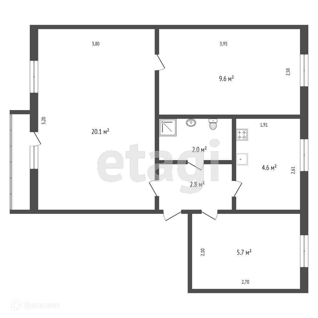 Общая площадь 44.7 м2