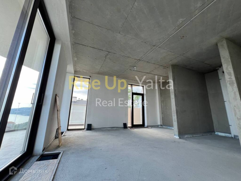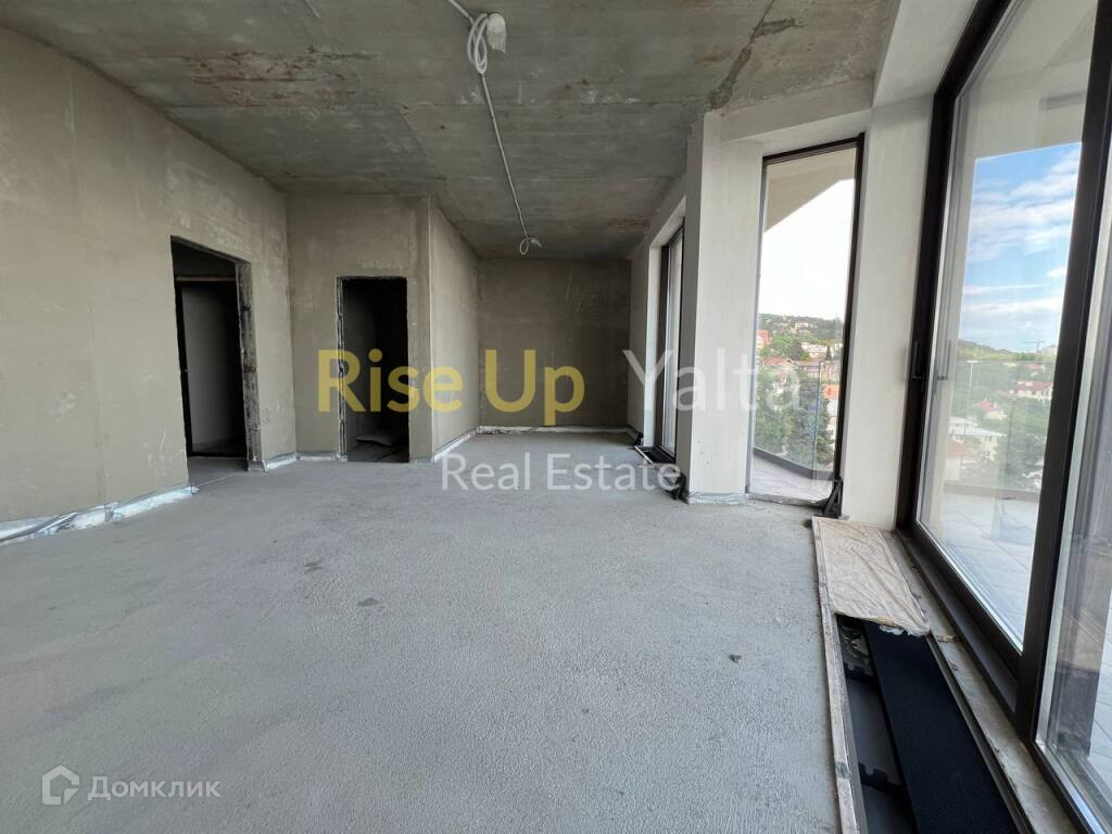 Общая площадь: 152,74 кв.м, расположена на 4 этаже, шестиэтажного дома. Выполнена предчистовая отделка, а именно: стяжка на полу, шумоизоляция полов, оштукатурены стены, установлены радиаторы для центрального отопления. Установлены панорамные раздвижные окна с энергосберегающим напылением. Из каждого помещения есть выход на террасу, общей площадью 42,64 кв.м, с панорамным видом море, парк, горы и Ялту.