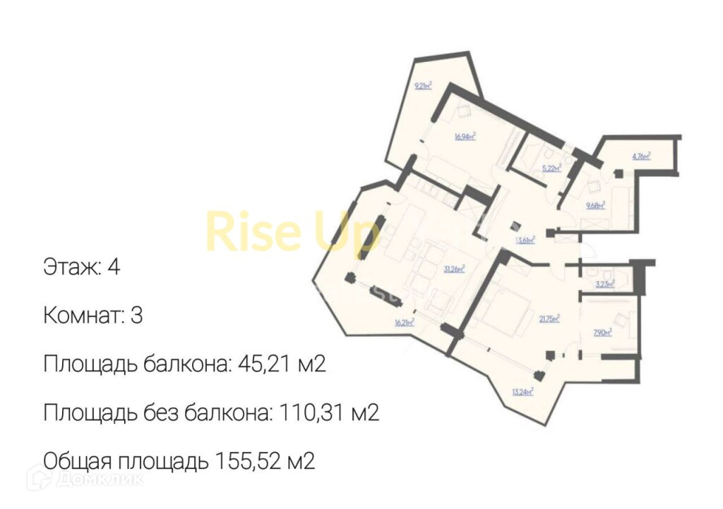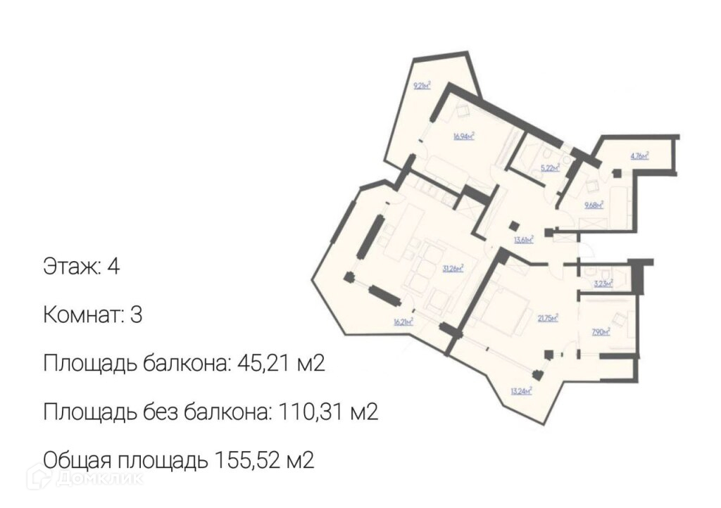 Общая площадь 155.52 м2