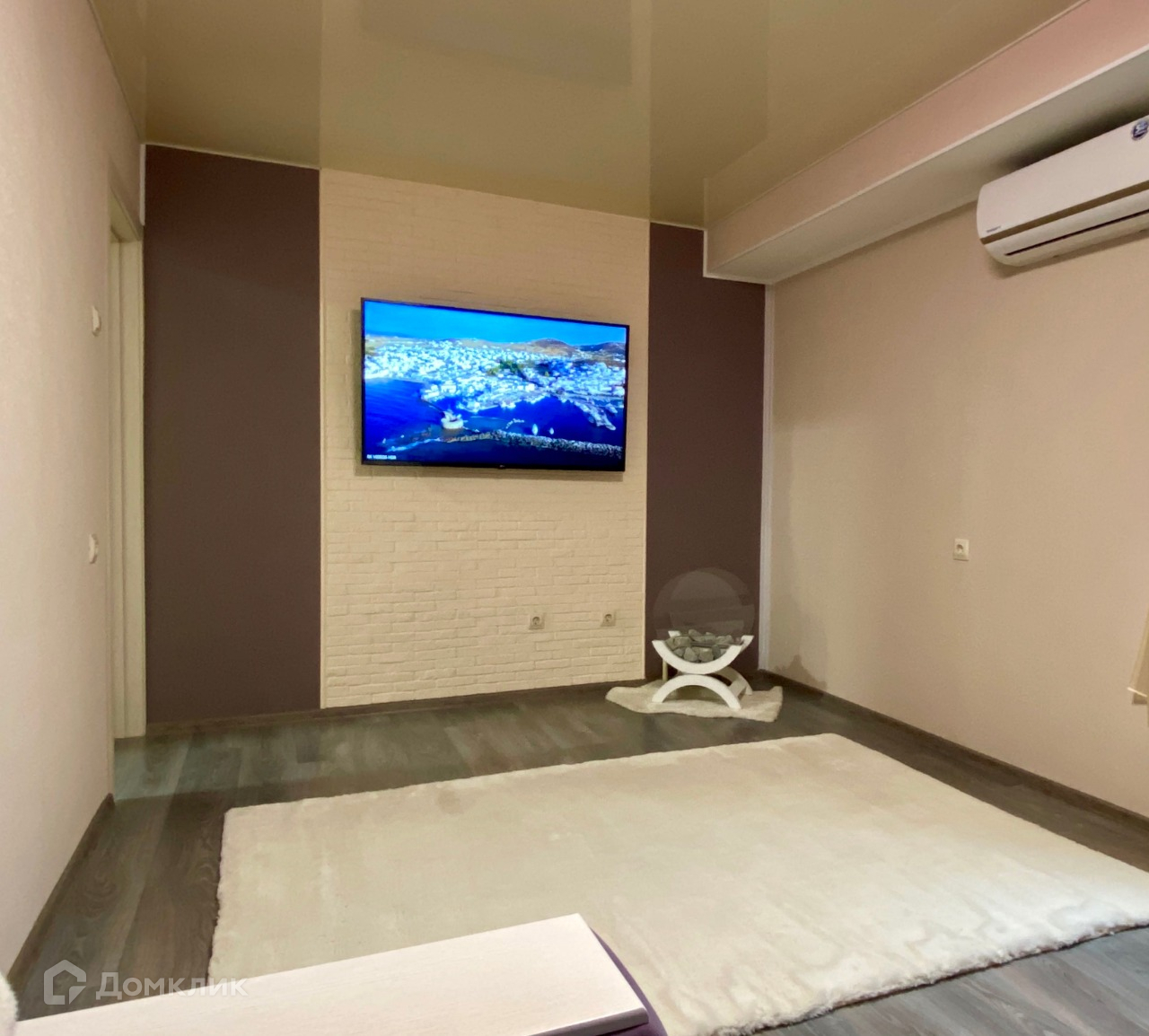 Большой 2-х метровый диван в комнате и 1- спальный раскладывающийся диван на лоджии, 2 телевизора, биокамин с «живым» огнем.