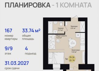Продажа 1-комнатной квартиры, 33.7 м2