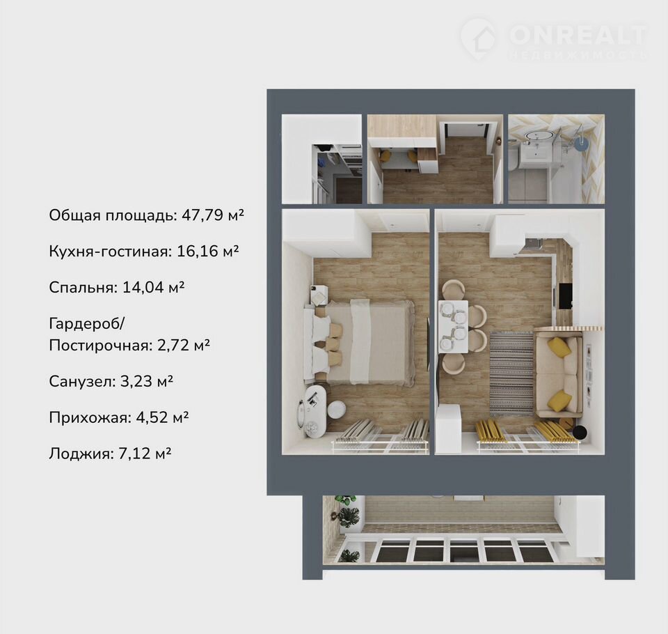 Общая площадь 47.8 м2