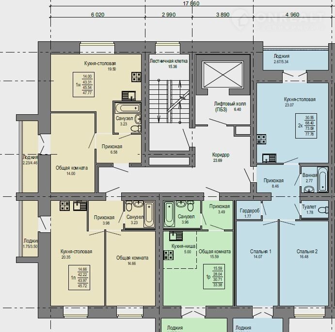 Балкон, лоджия 1 лоджия