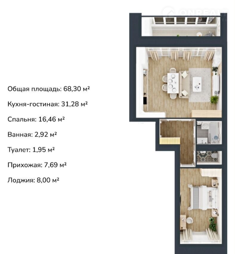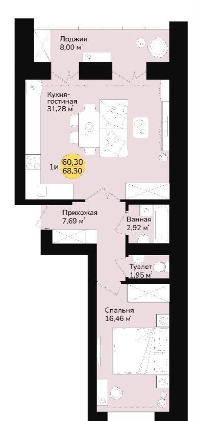 Общая площадь 68.3 м2