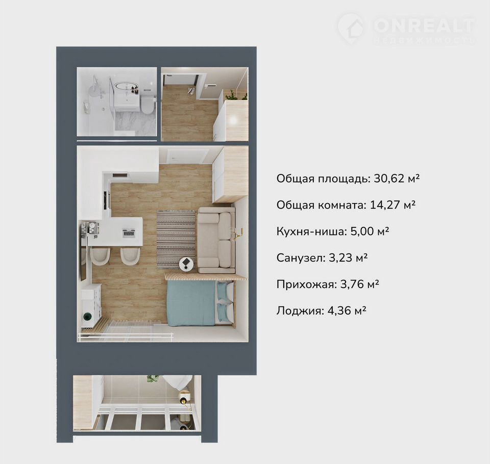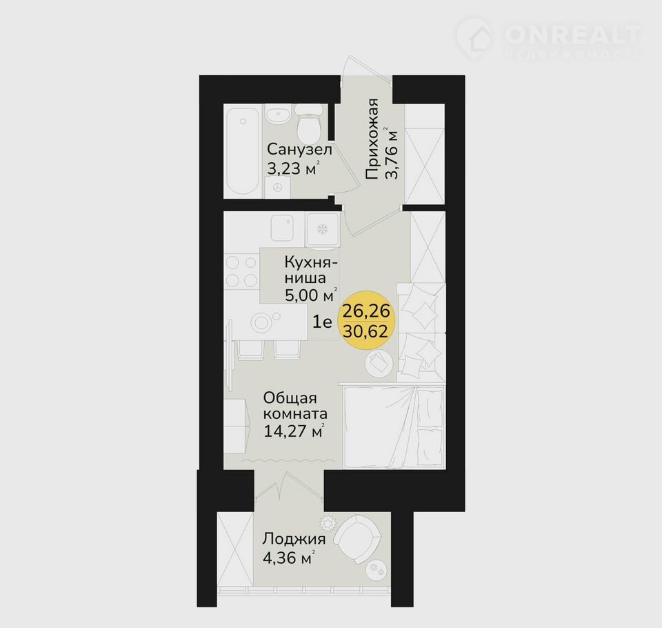 Общая площадь 30.6 м2