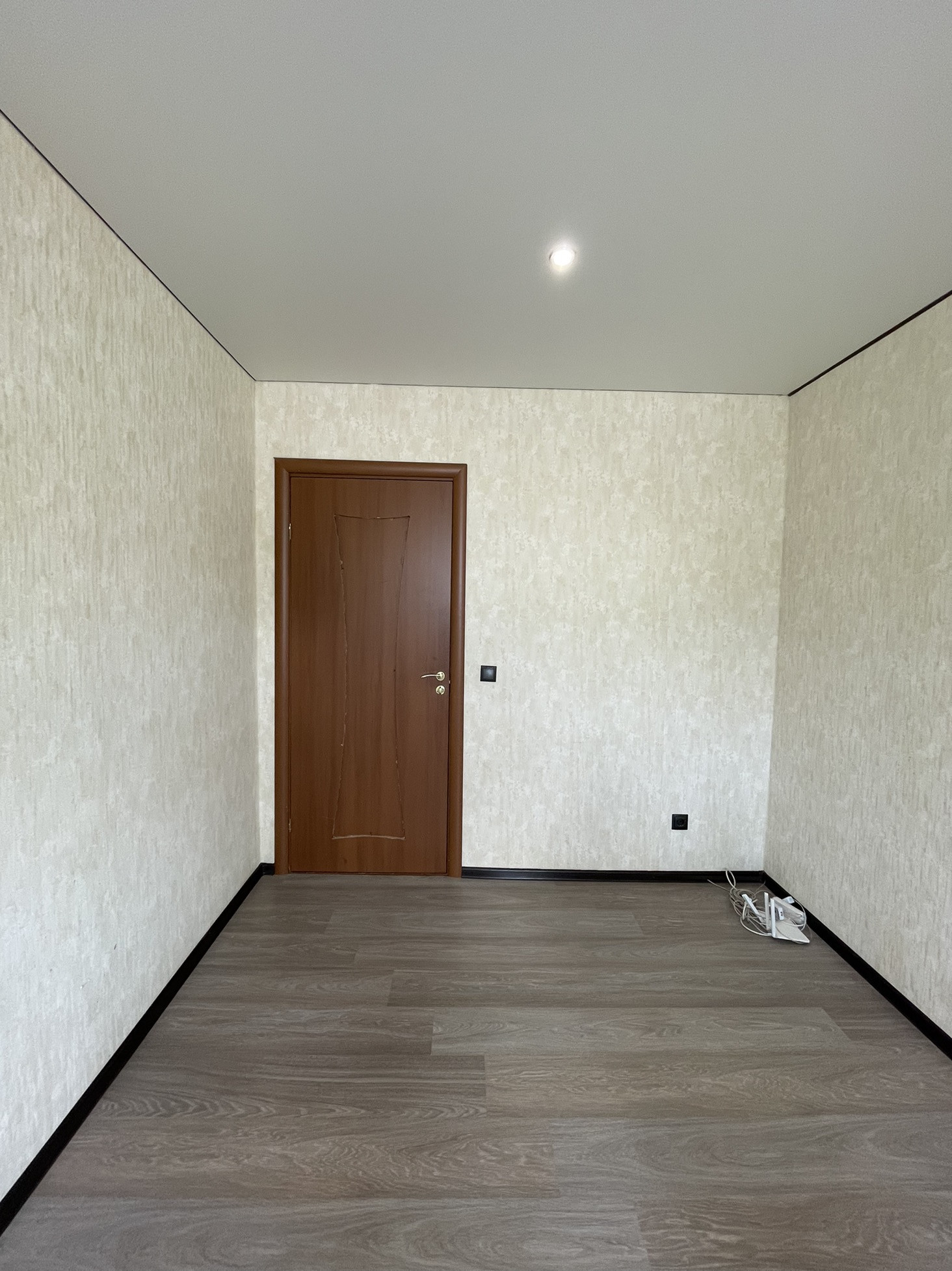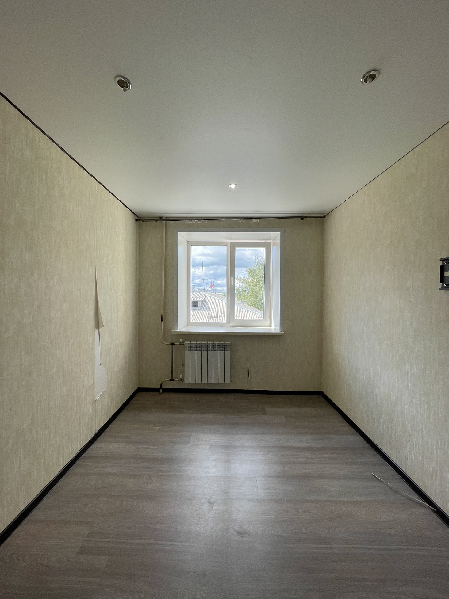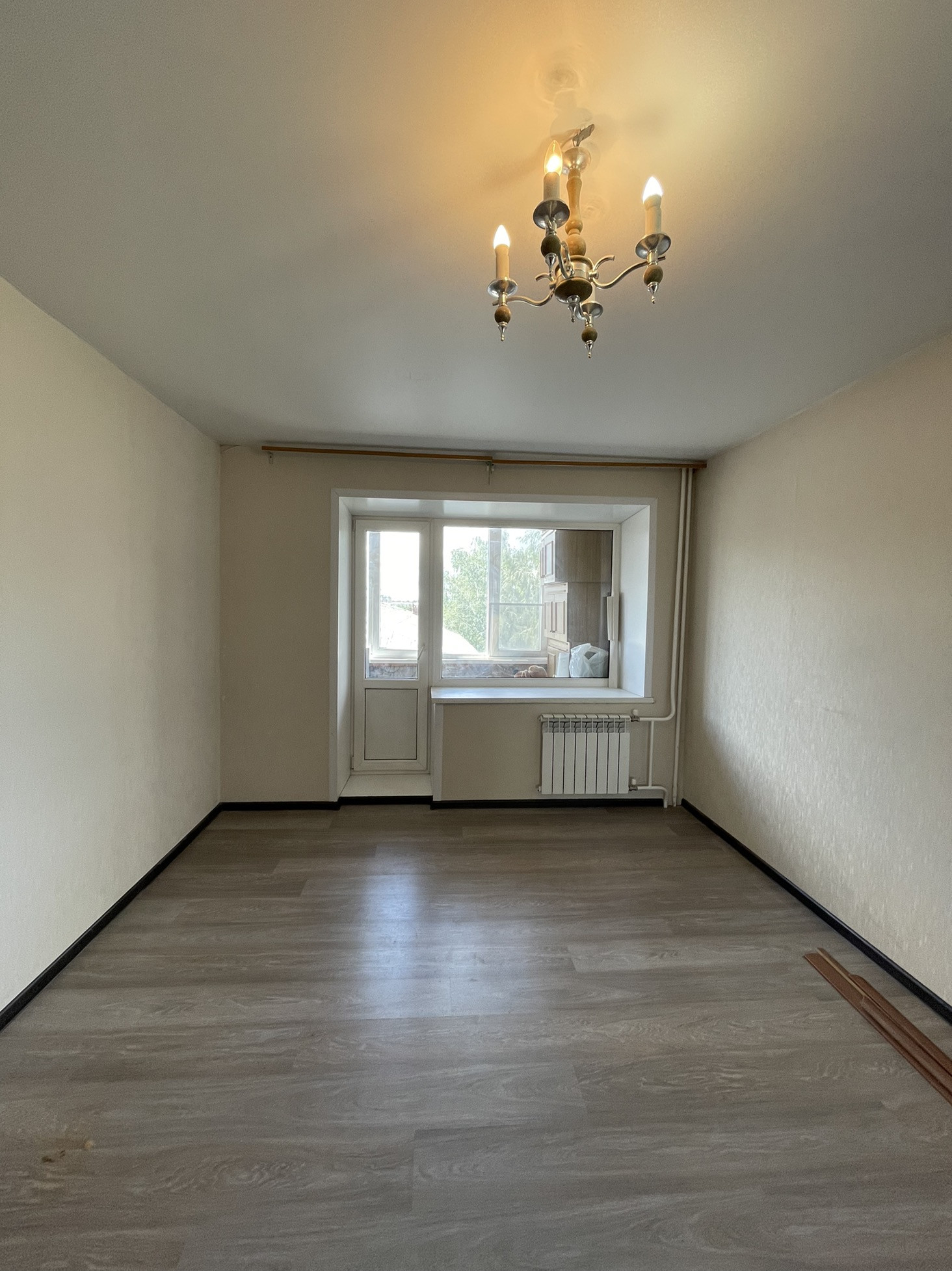 3. Натяжные потолки: в комнате и на кухне, ламинат в двух комнатах, новый линолеум на кухне