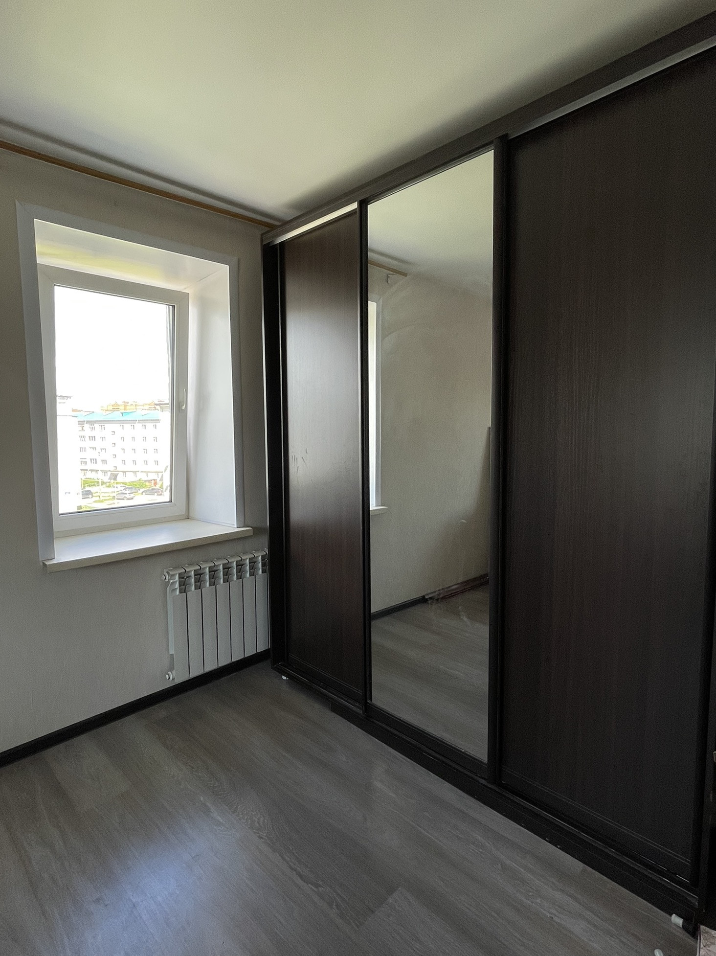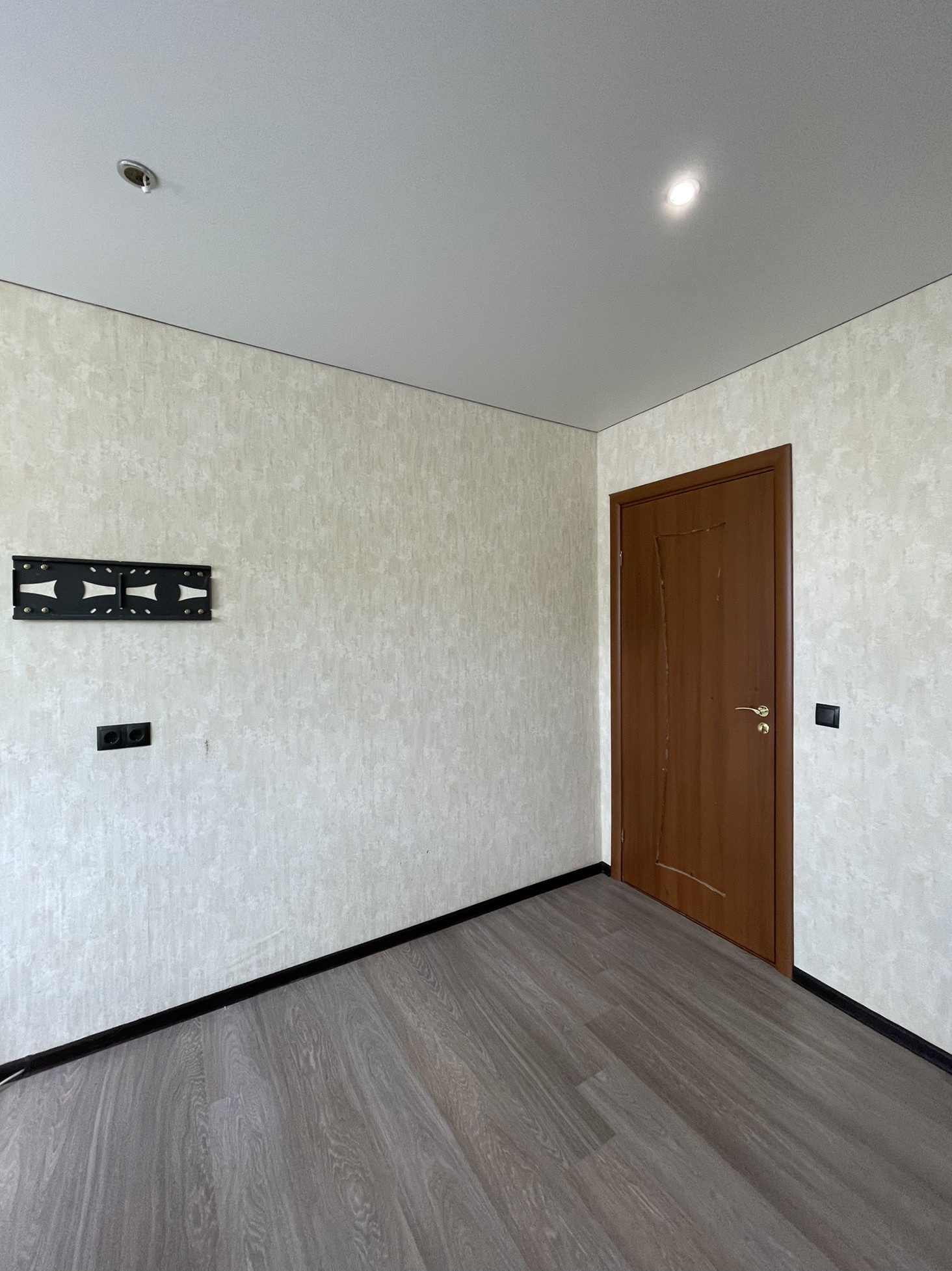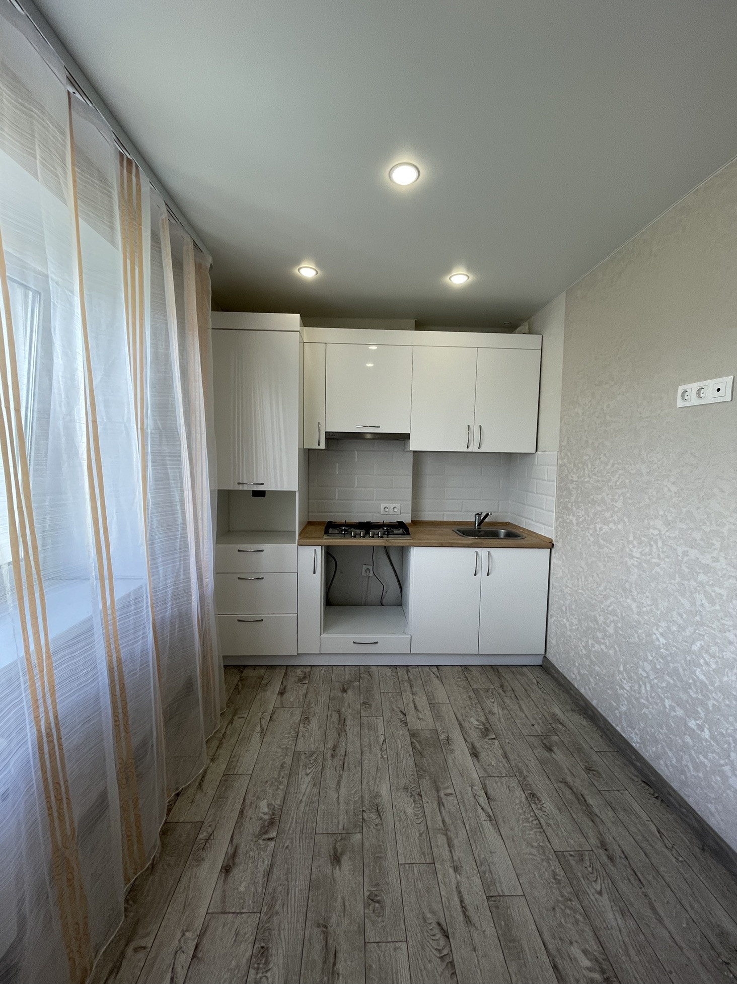 3. Натяжные потолки: в комнате и на кухне, ламинат в двух комнатах, новый линолеум на кухне