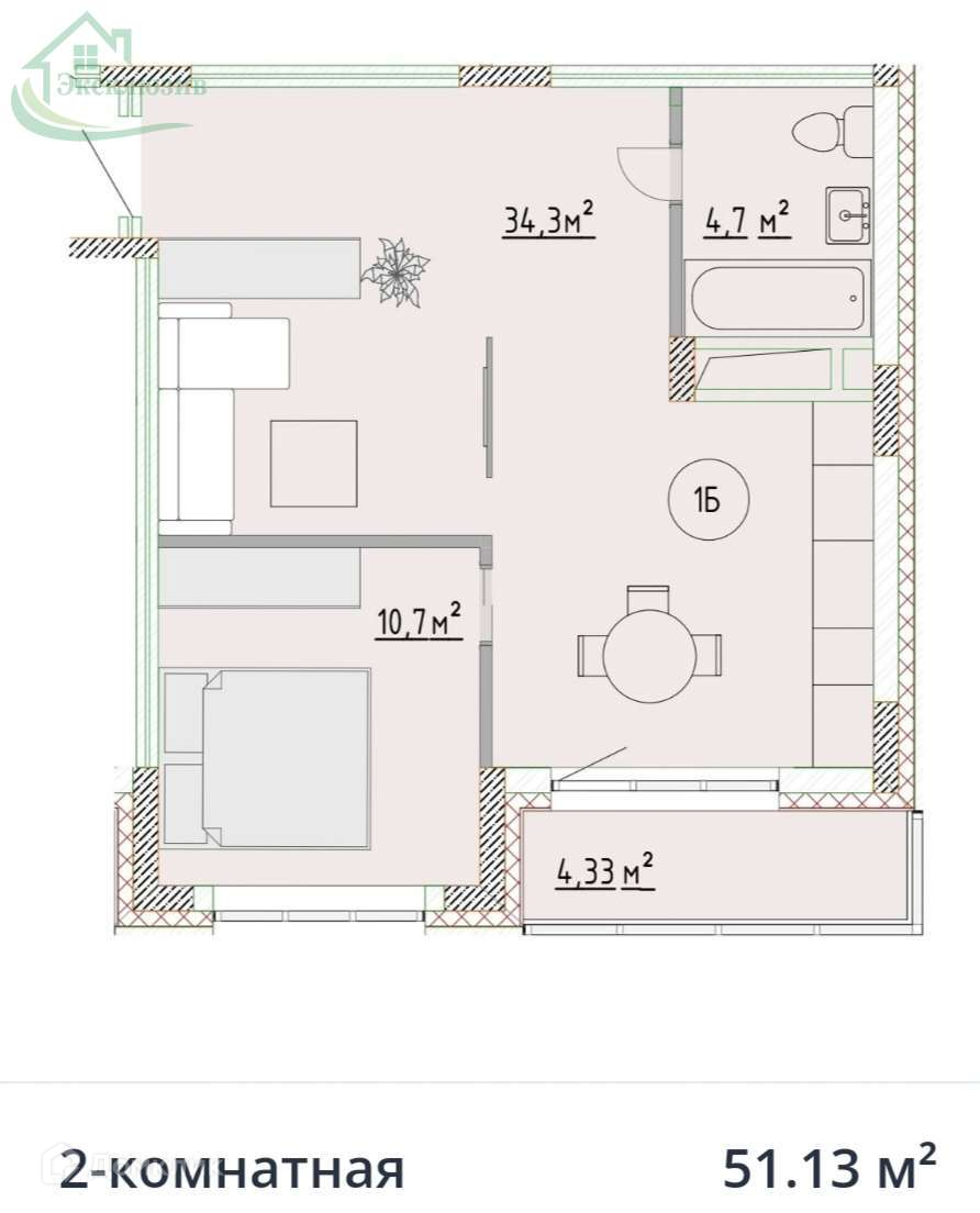 Общая площадь 51.13 м2