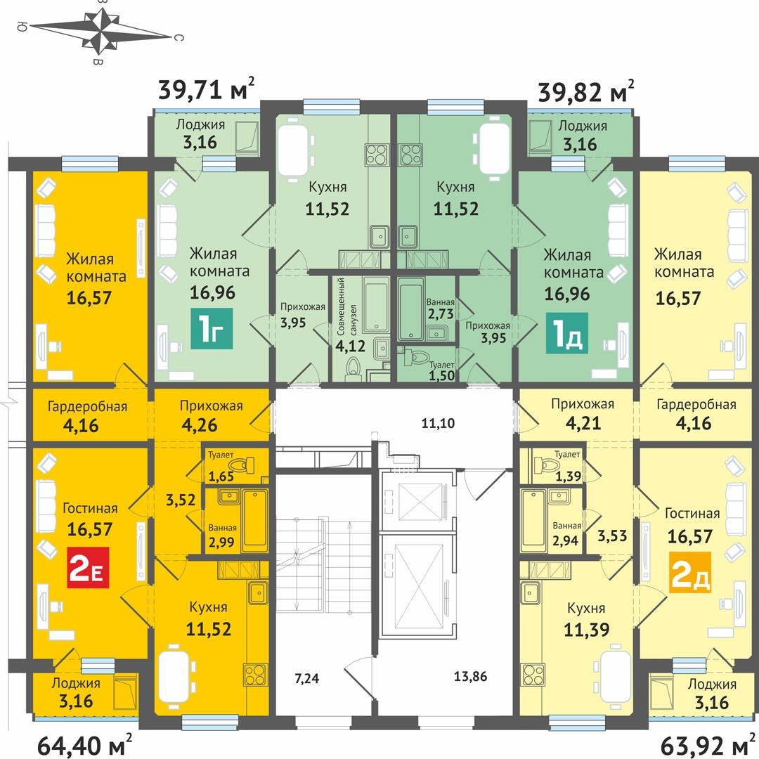 Общая площадь 65.5 м2