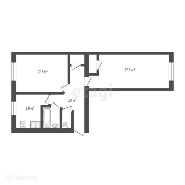 2-комнатная квартира, 44 м2, этаж 1 / 5, на продажу в посёлке городского типа Медведево, Коммунистическая улица, 14