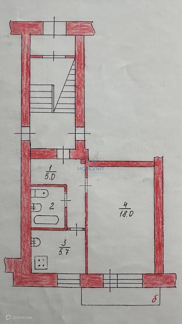 Квартира расположена на 1 этаже (очень высокий цоколь) 5-ти этажного кирпичного дома.