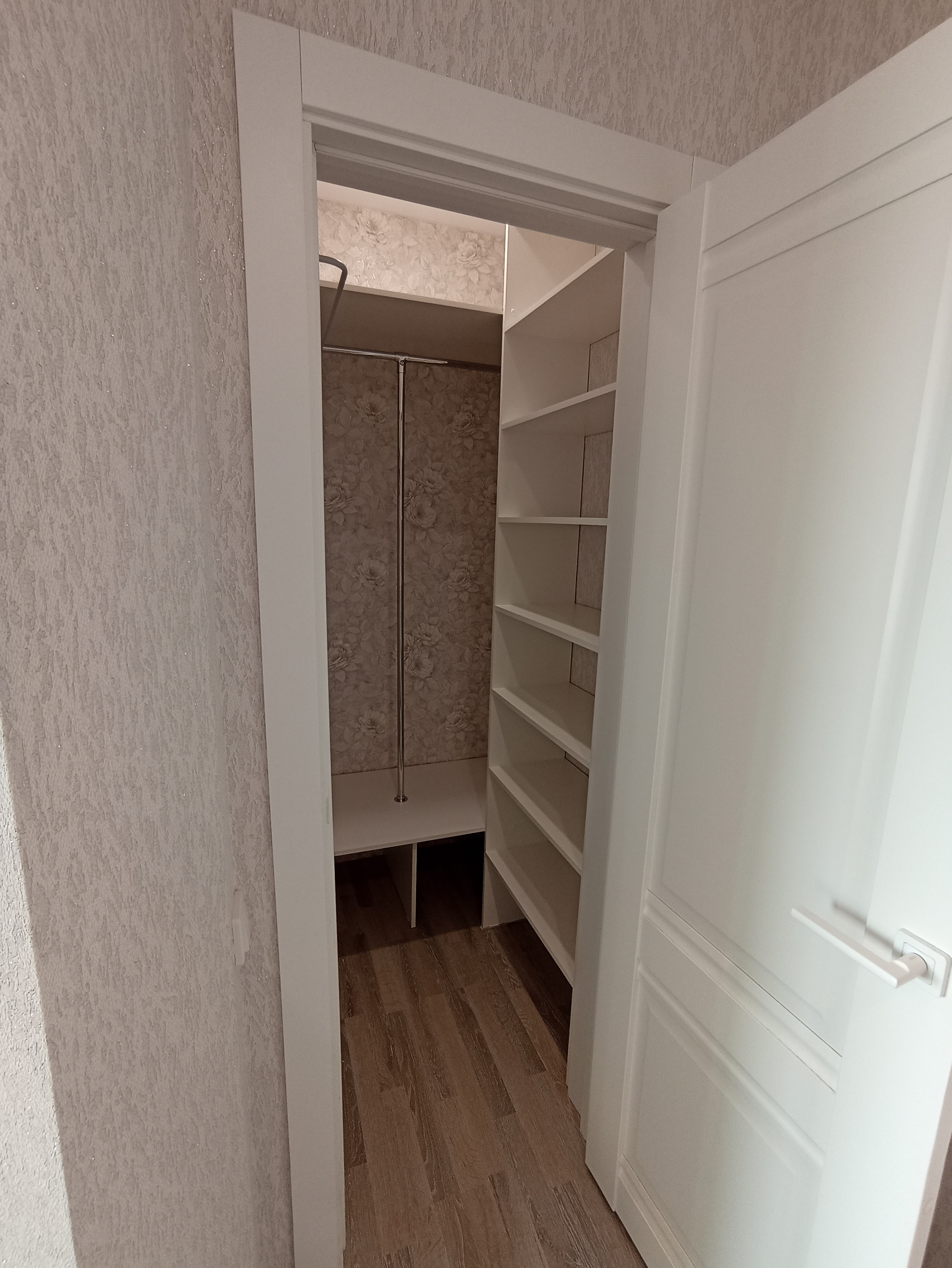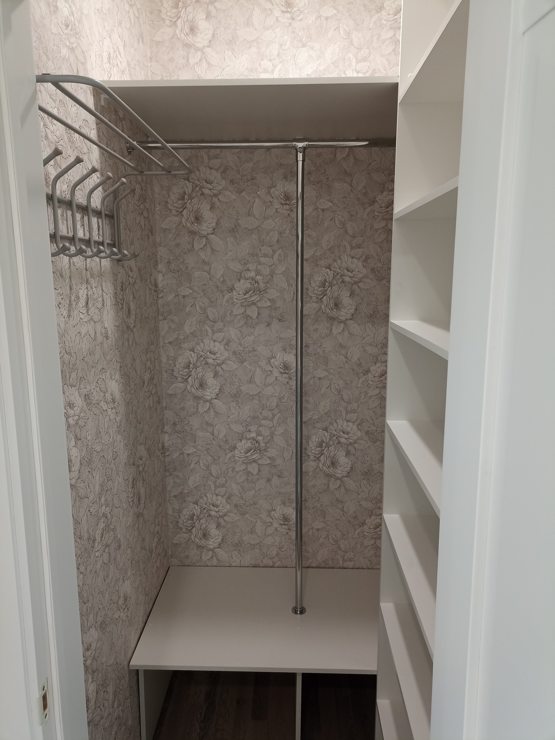 Гардеробная уже полностью оборудована и готова вместить большую часть ваших вещей.