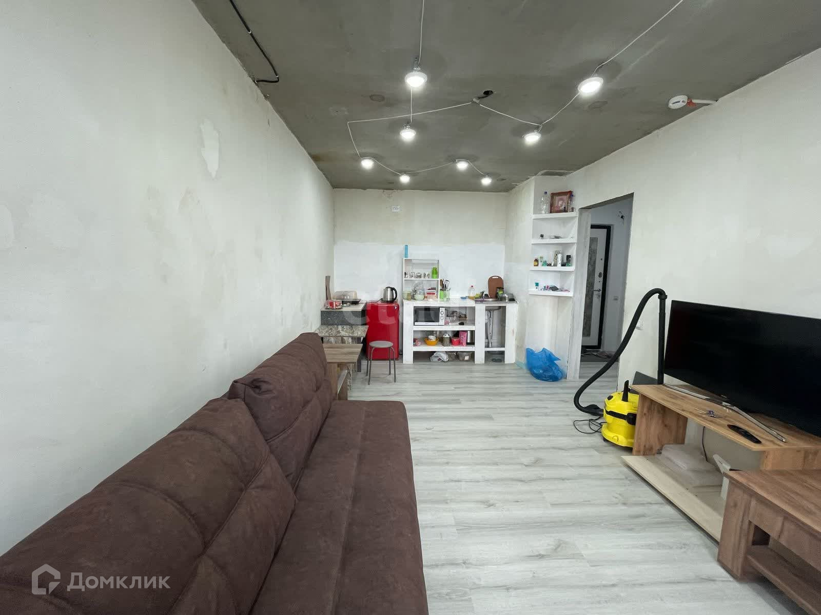 - Квартира уникальной планировки. Кухня - гостиная 16,6 кв, позволяет выделить рабочую зону и зону отдыха. Комната 12 кв.