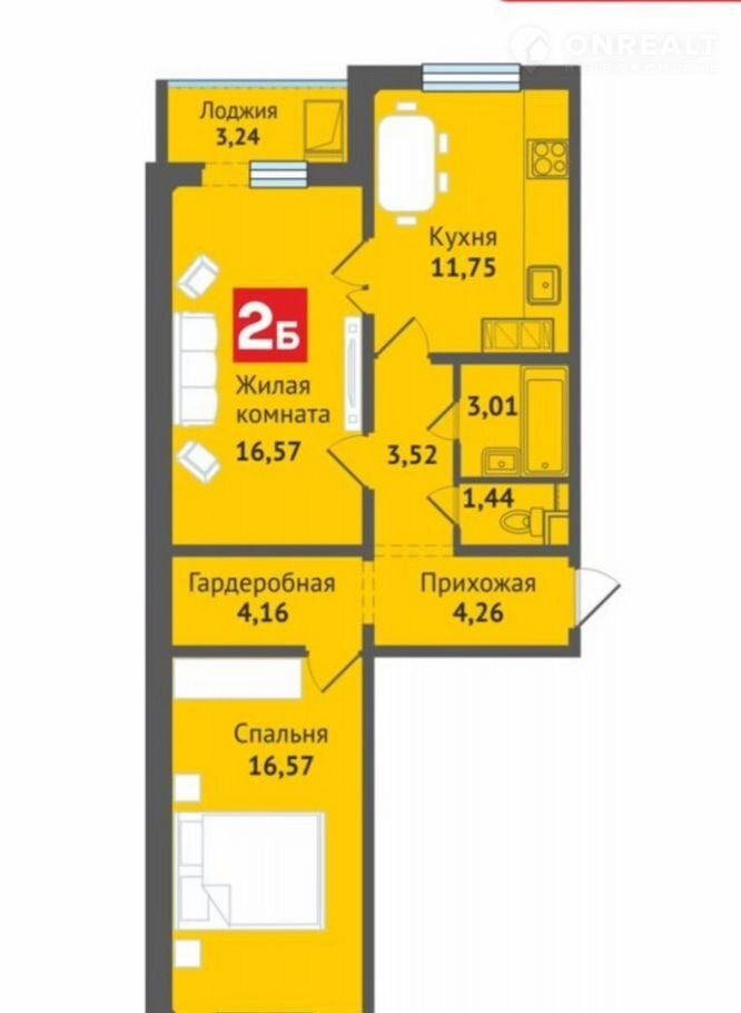 Общая площадь 64 м2