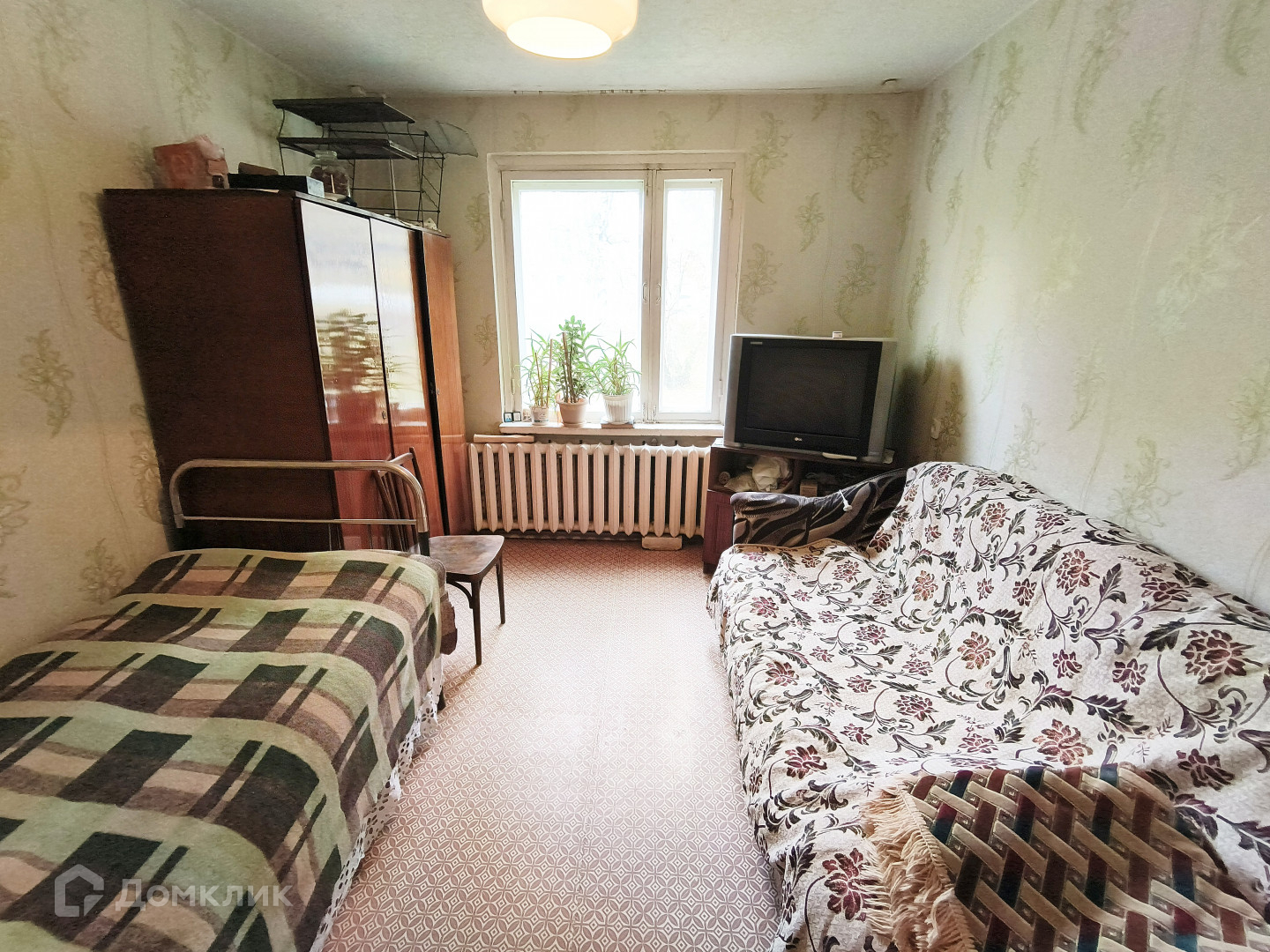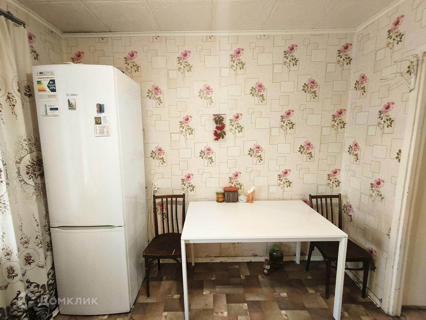 Окна - ПВХ на кухне и в зале, в остальных комнатах деревянные.