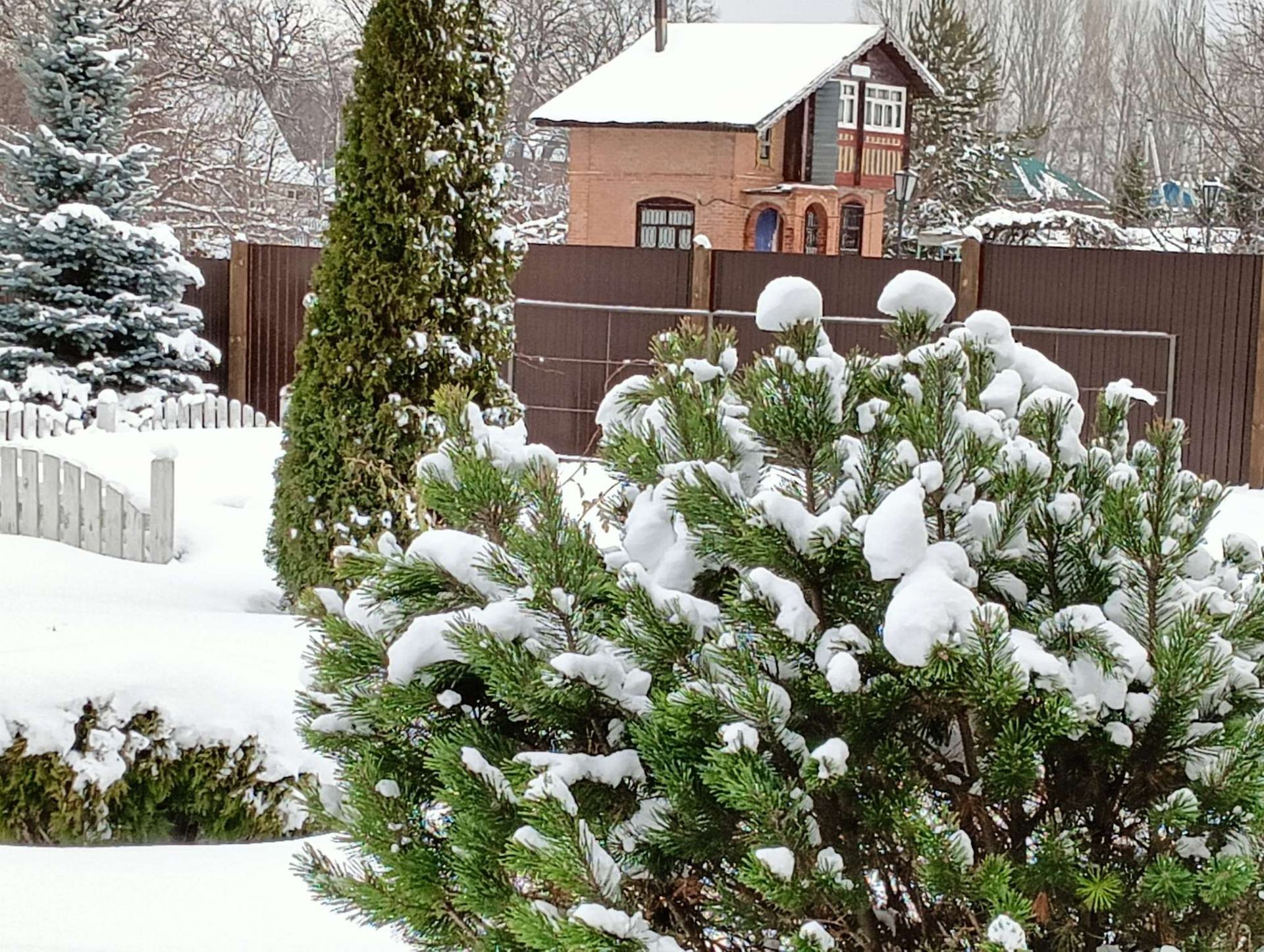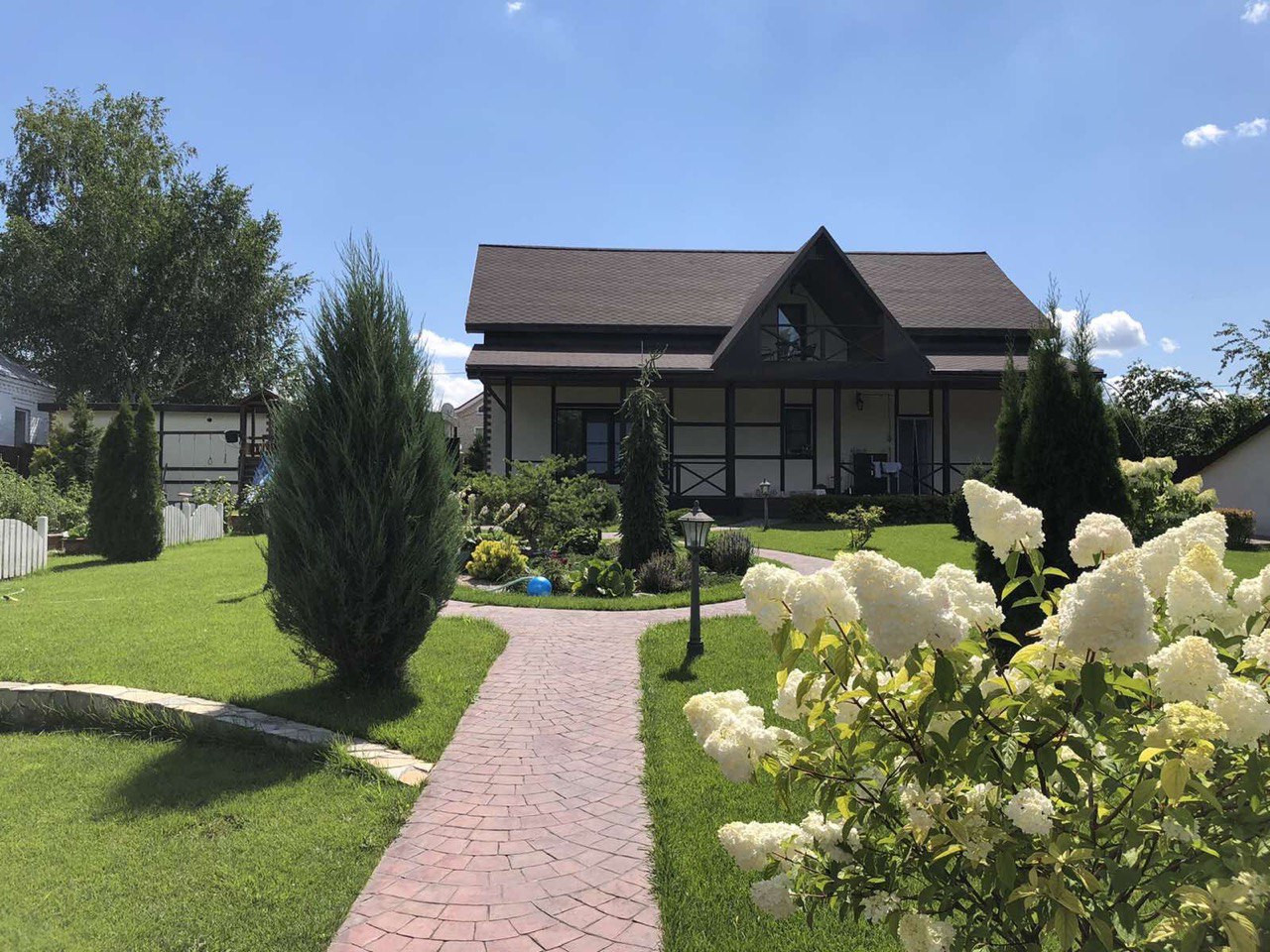 ☑️Ухоженная территория перед домом( газон, ива, береза, туя).
