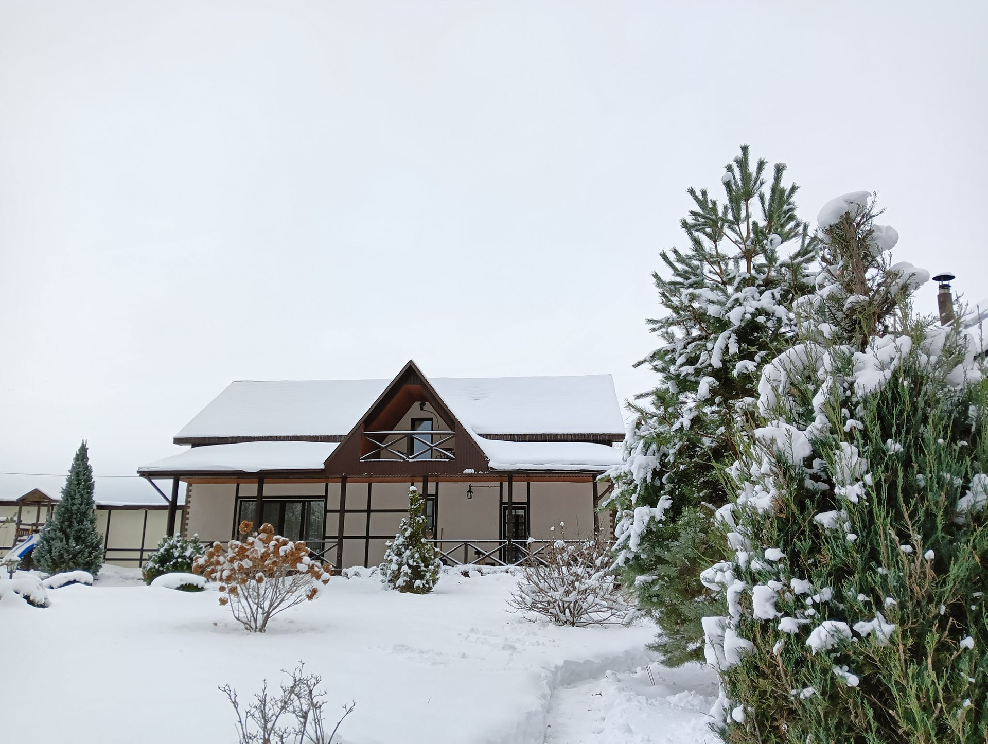 Дoм пocтpoeн в арxитeктурнoм cтиле Шале - cнaружи и