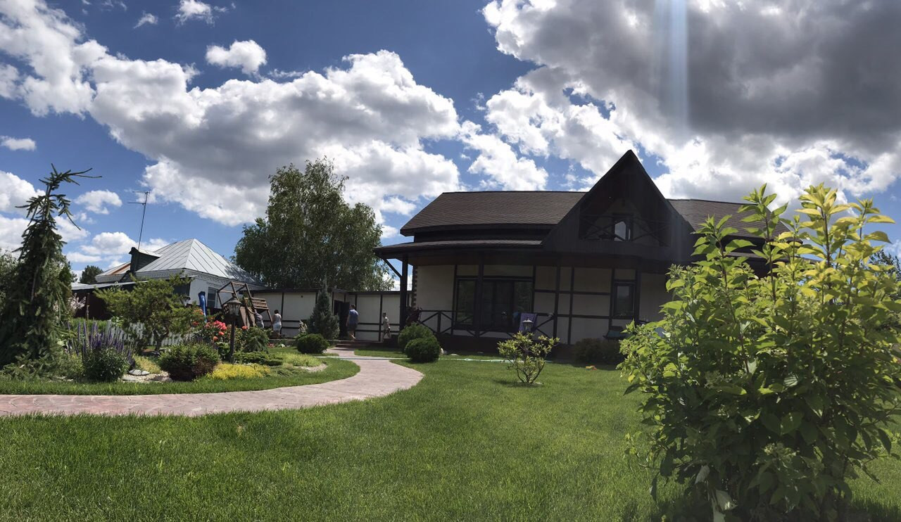 (виноград, малина, вишня, земляника, клубника, яблоки, смородина, крыжовник, груша, есть грядки для посадки овощей и зелени), детская площадка, отдельный погреб во дворе с удобным входом, баня с водонагревателем и душ, конвектор, выход с бани на террасу, пруд, стационарный бассейн с рециркуляцией воды. Есть постройка- может использоваться под курятник, конюшню, или вольер для собаки. Гараж на два автомобиля (автоматические ворота).