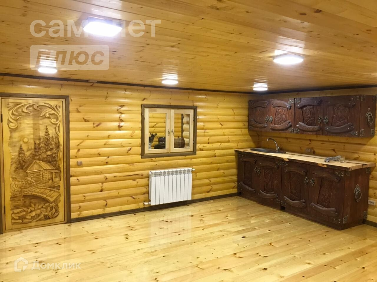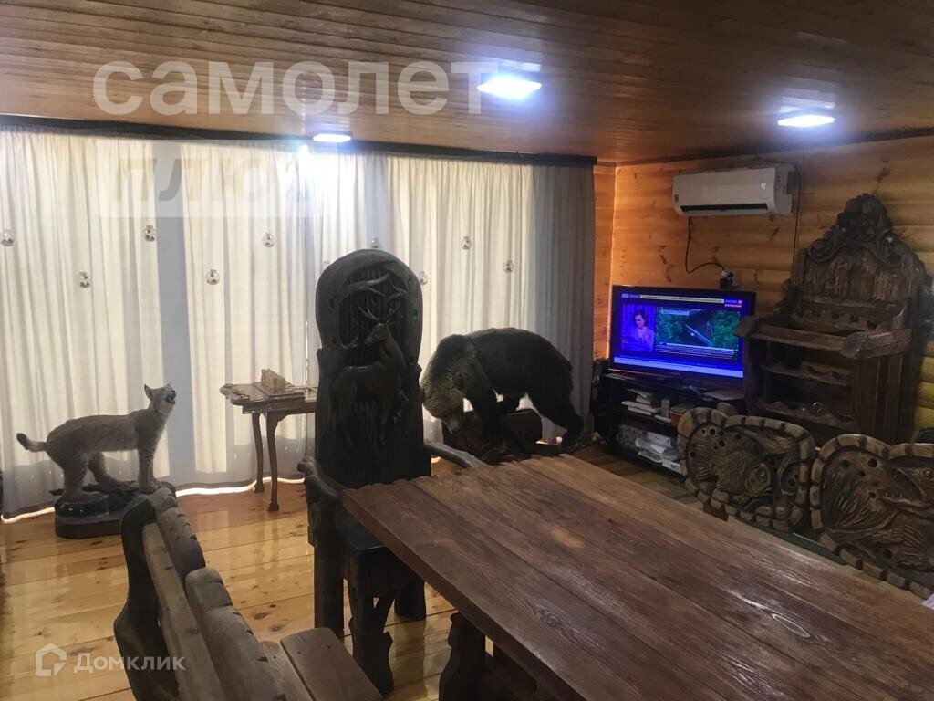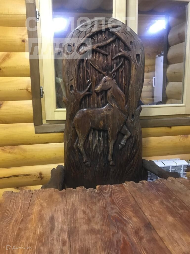 - Участок 15 соток. в доме вся резная мебель :кухня ,стол, скамейки, трон.