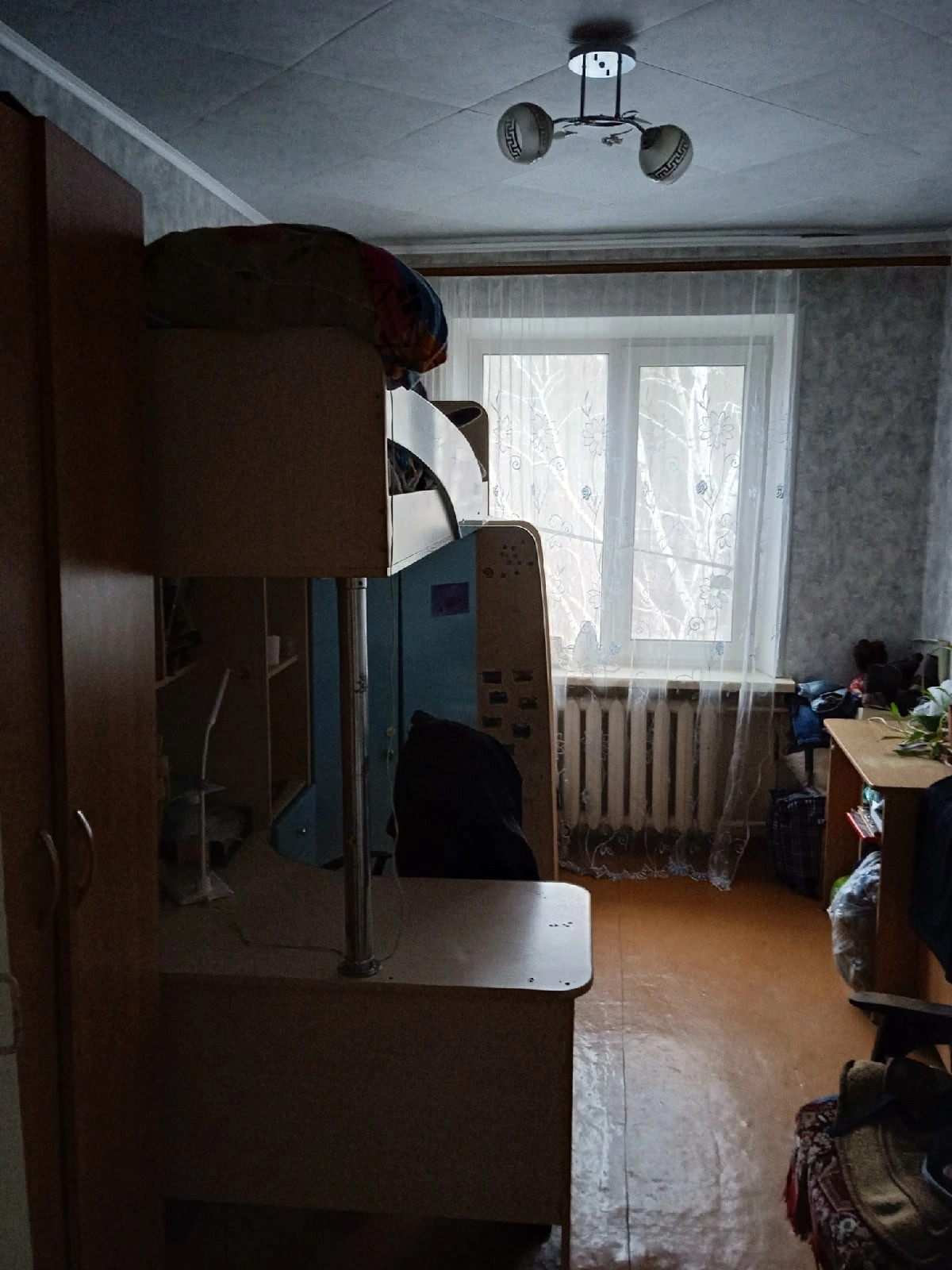 Одно окно в квартире выходит на улицу,остальные-во двор.Магазины,детская площадка,детский сад рядом с домом.Через дорогу- лесопарковая зона.В квартире металлическая дверь,пластиковые окна,застеклённый балкон,пластиковые трубы,счётчики на воду и газ.