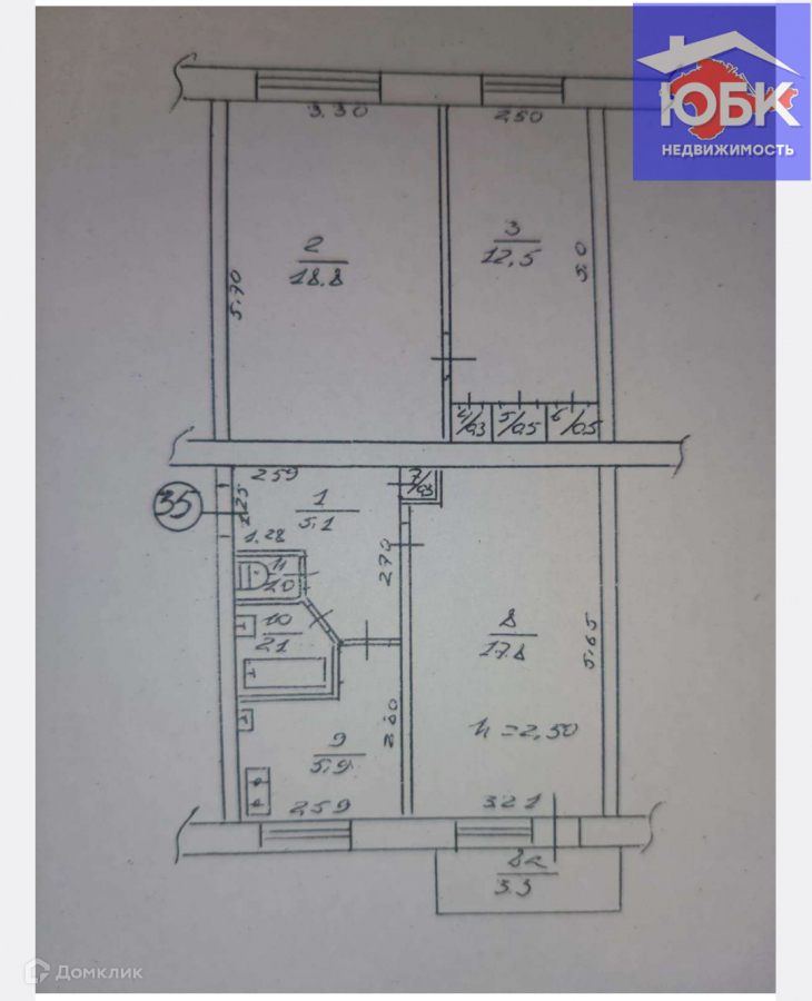Жилая площадь 49.1 м2