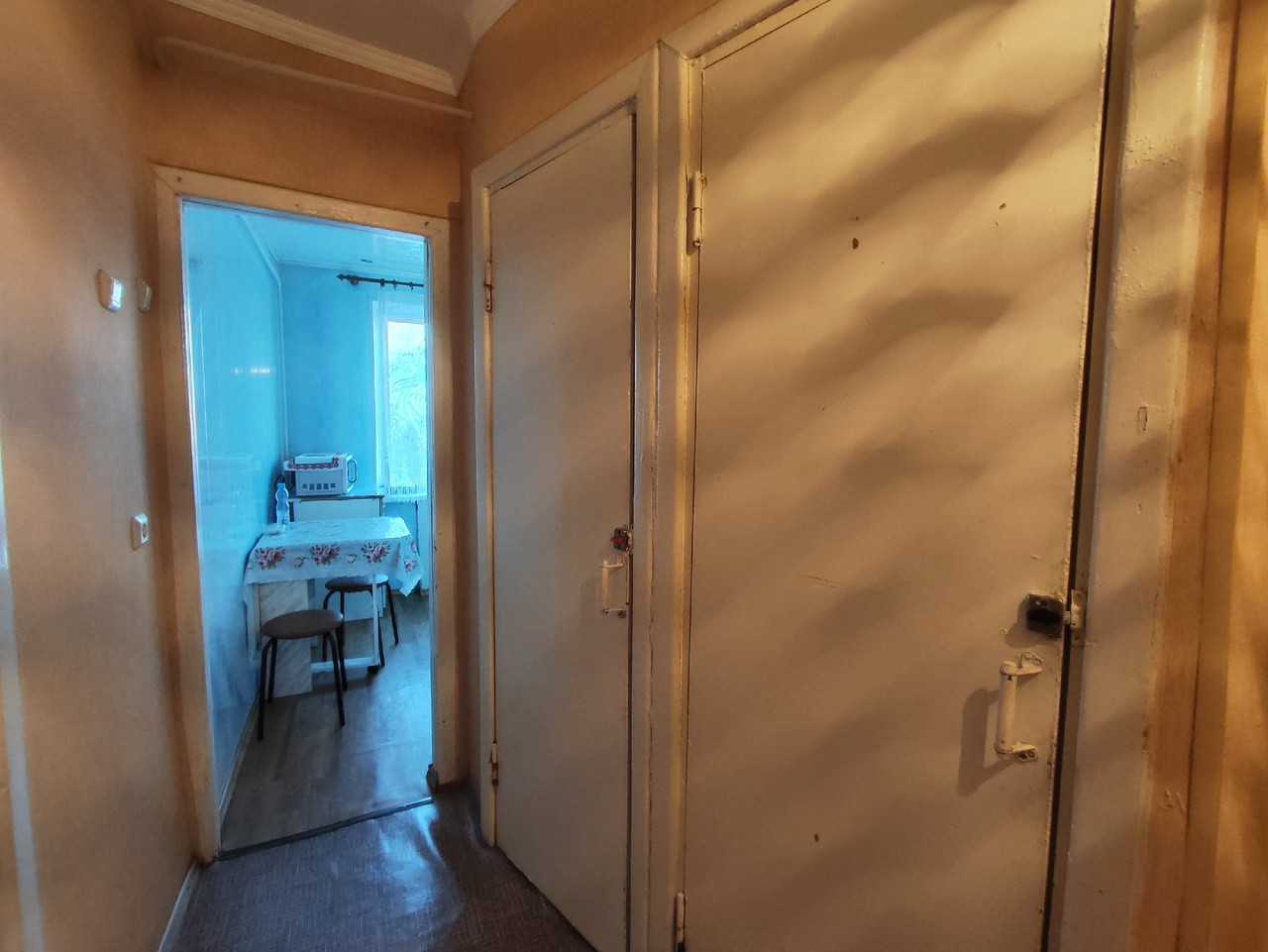 Продам полнометражную 3-х комнатную квартиру, расположенную в центре пгт. Мирный по ул. З. Космодемьянской на пятом этаже. Общая площадь квартиры 59.7 кв.м., жилая 42.2, площадь кухни 6.1 кв.м. Балкон остеклен, окна ПВХ, радиаторы отопления чугунные, металлическая входная дверь, счётчики на все ресурсы, с/у раздельный, сантехника заменена. Пол бетонный, покрытие-линолеум, в одной комнате натяжной потолок, на кухне-навесной. Квартира без долгов и обременений, документы в порядке. У дома расположена детская площадка, наземная парковка, в непосредственной близости вся инфраструктура