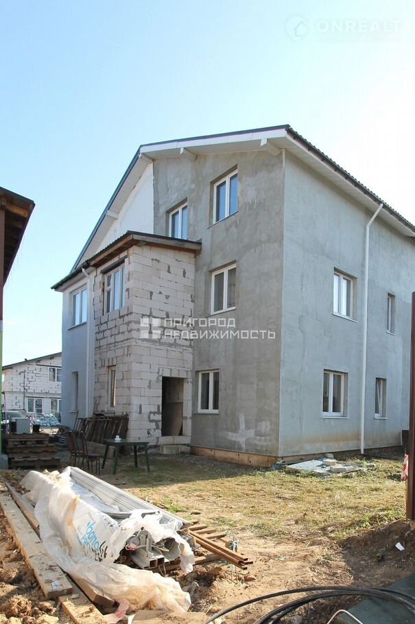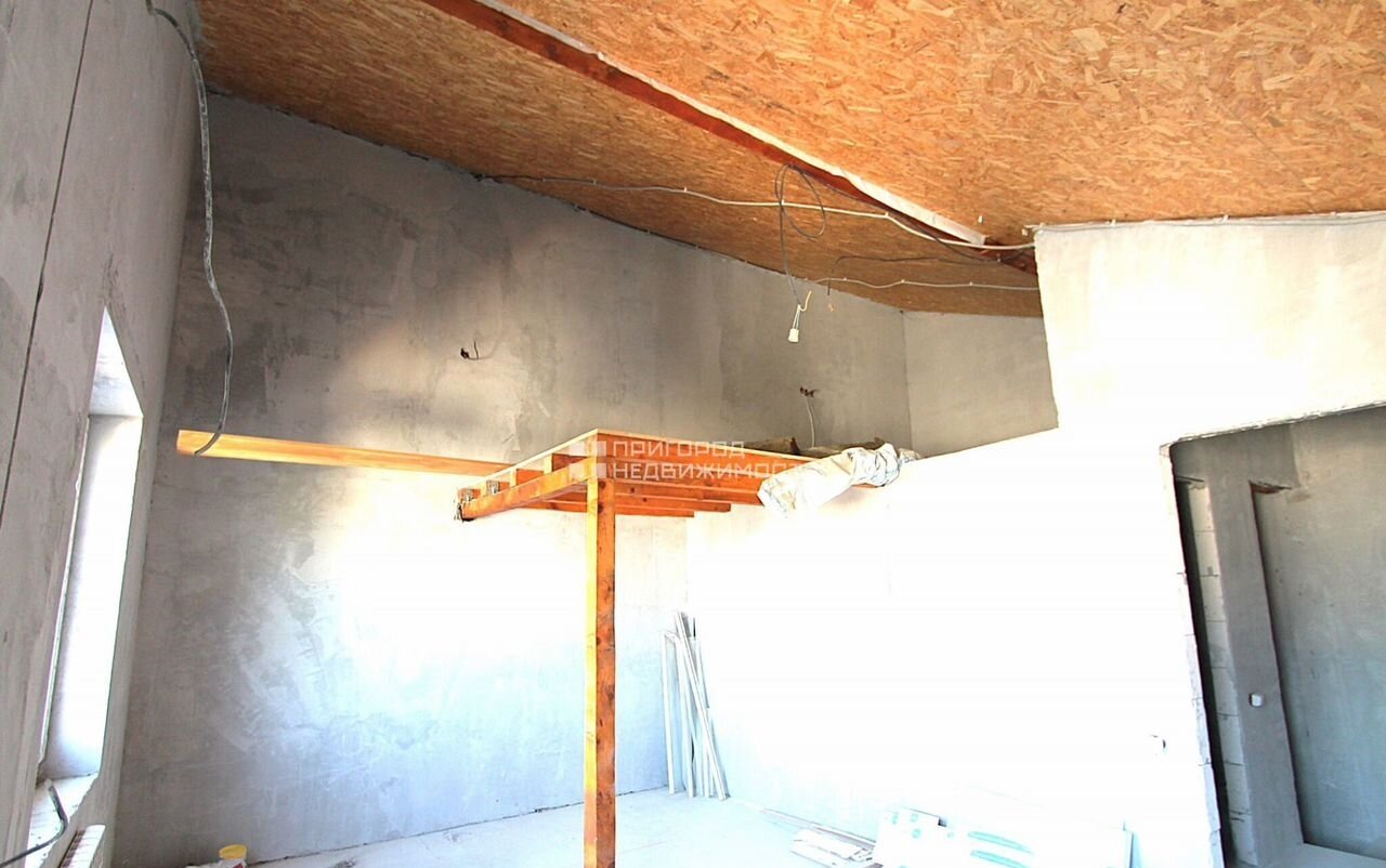 Дoм из пeнoблоков, произведена штукатурка во всех комнатах и санузлах, полы подготовлены к чистовой отделке. Установлен теплый пол в кухне-гостинной и санузлах 1-го и 2-го эт.