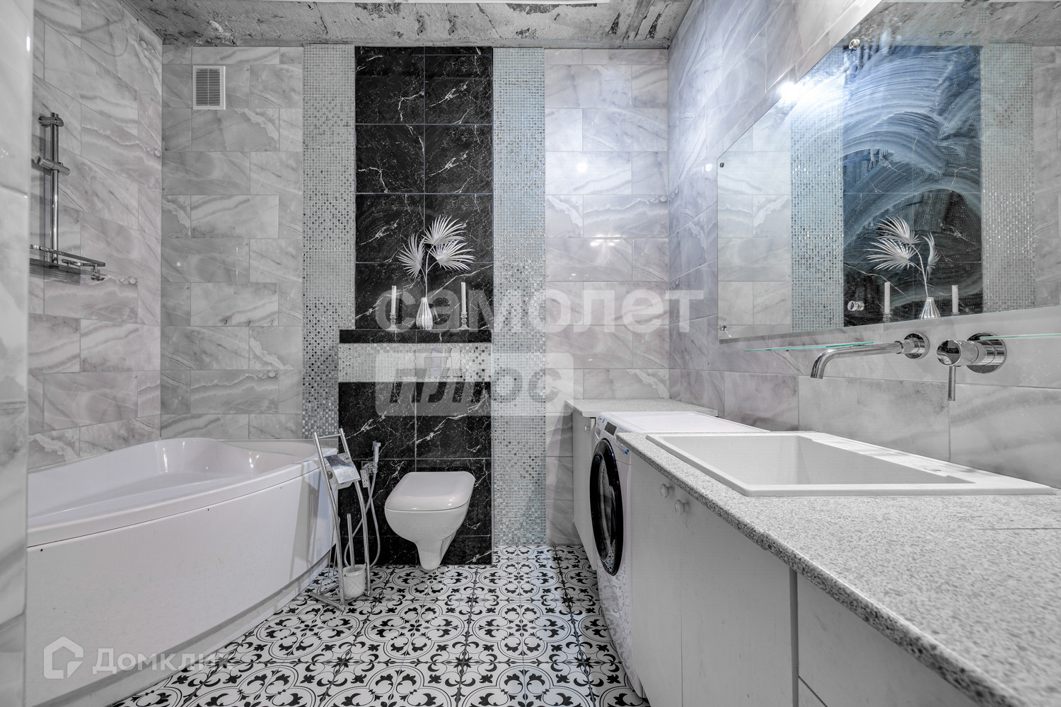 - 4 санузла (по 2 в каждой из частей);