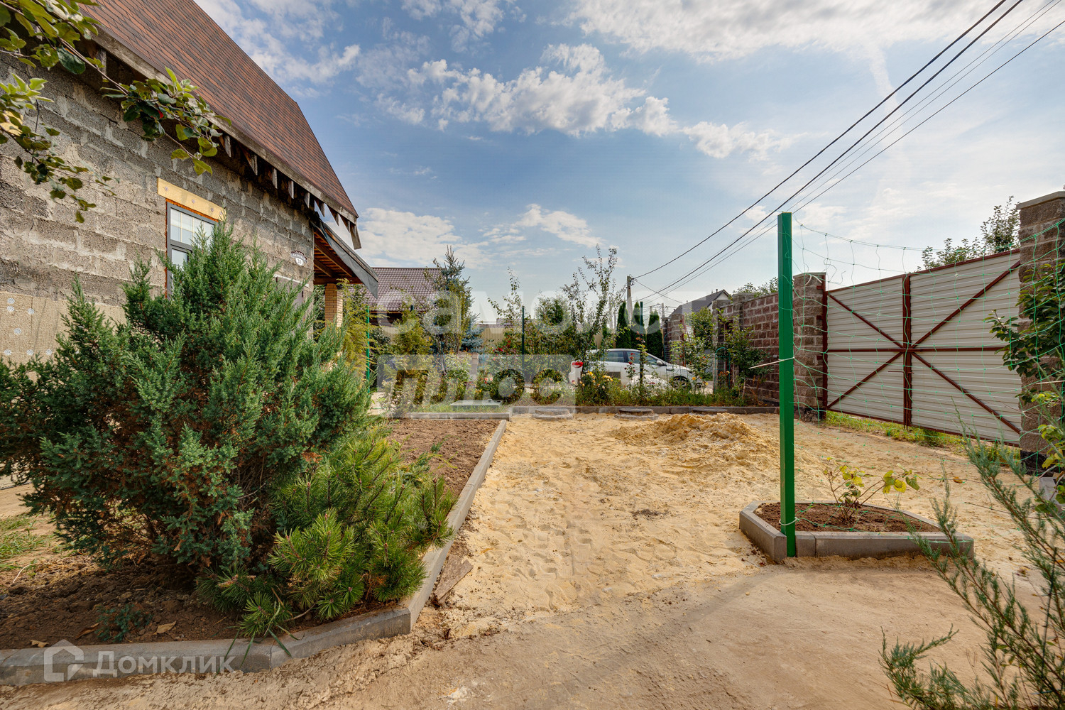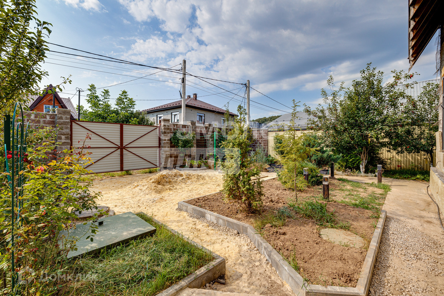 Окружен лесом и каскадом прудов рыболовных. Есть 6 пляжей в 10мин езды. Участок правильной формы ~24×27м, ровный, сухой, приподнятый навозным грунтом. На данный момент в озеленении территории представлены около 20 видов хвойников, 25сортов роз и др.цветы, виноград 5-летка, сортовые плодовые деревья и кусты 8-9-летки (все плодоносящие).