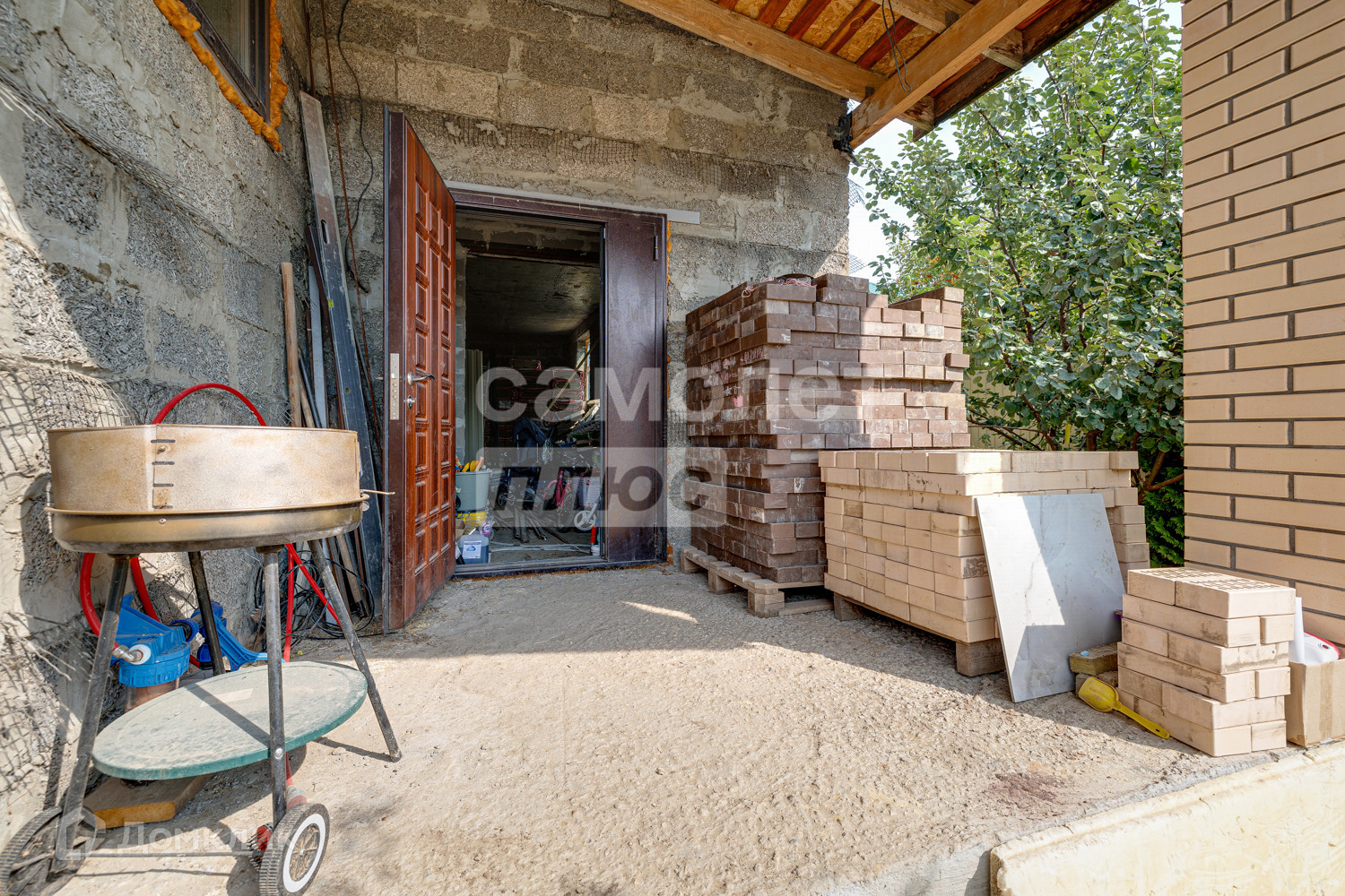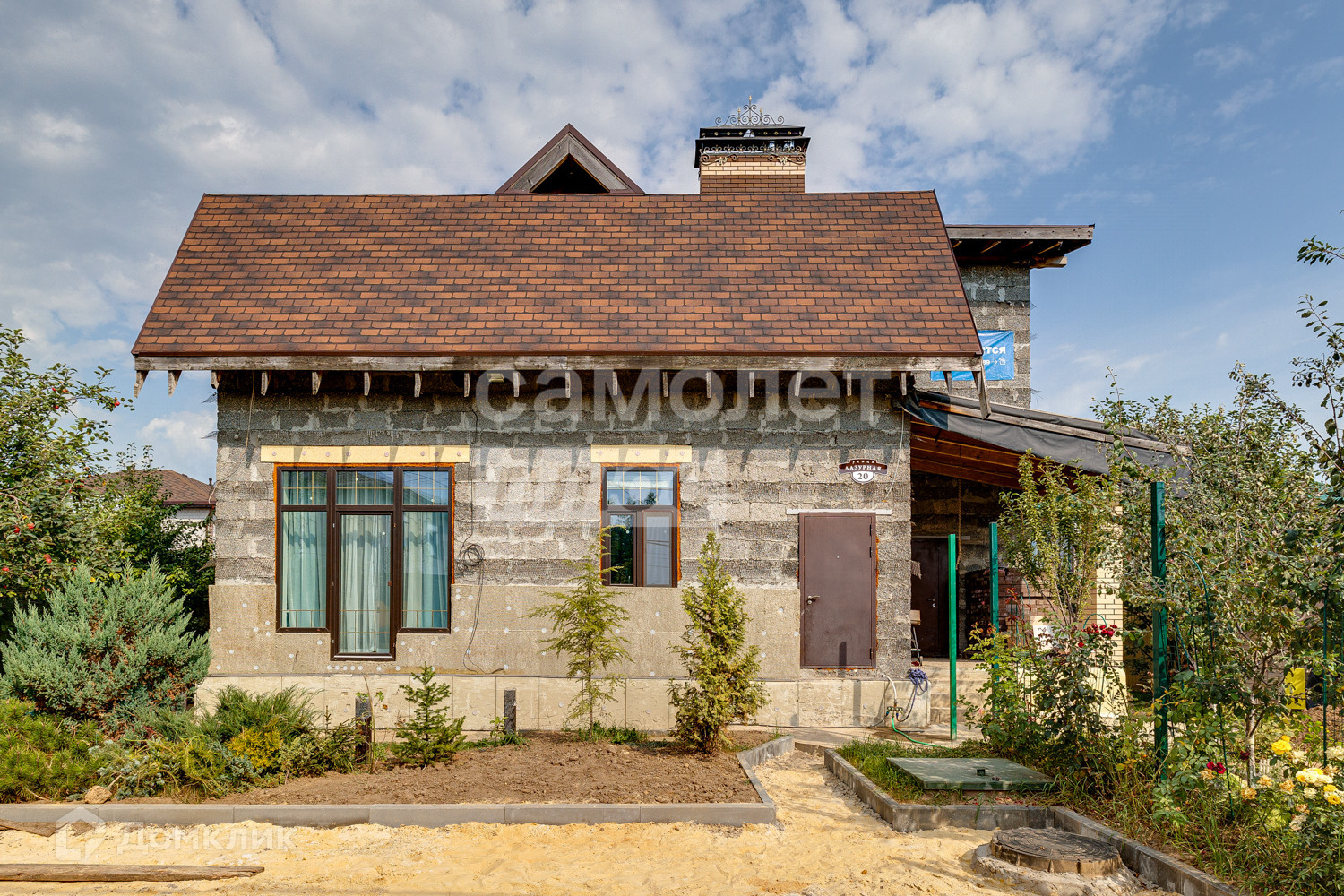 Для всего фасада закуплен утеплитель-базальтовое волокно, сетка и леса. Весь материал строительный и многие инструменты остаются в дар. Дом зарегистрирован, площадь - 295,3м² + 5м² (погреб)+ 84м² (чердак), 287м² - часть дома с отделкой и 101м² - часть дома без отделки (фактическая);