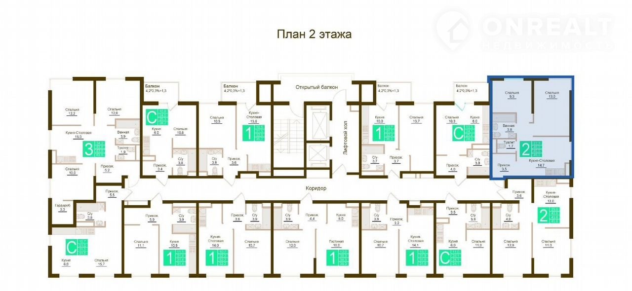 Количество комнат 2