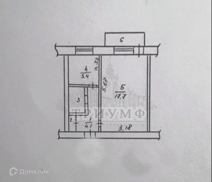 Балкон, лоджия 1 балкон
