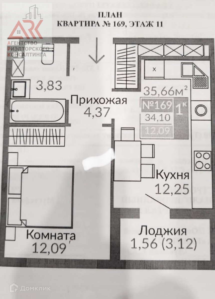 Площадь кухни 12.3 м2