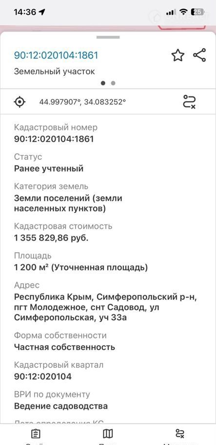 - Участок имеет кадастровый номер: 90:12:020104:1861.