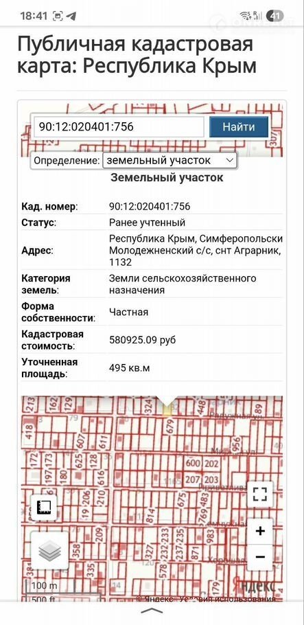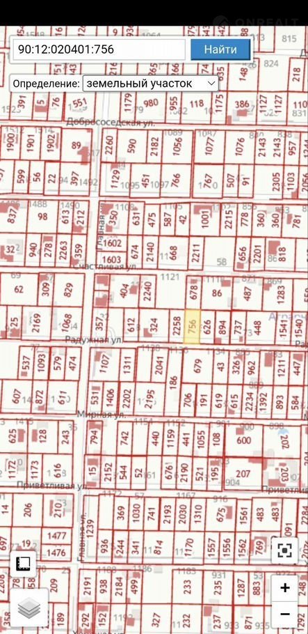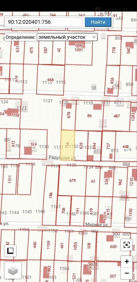 Кадастровый номер участка 90:12:020401:756 улица Радужная, 8я дорожка.