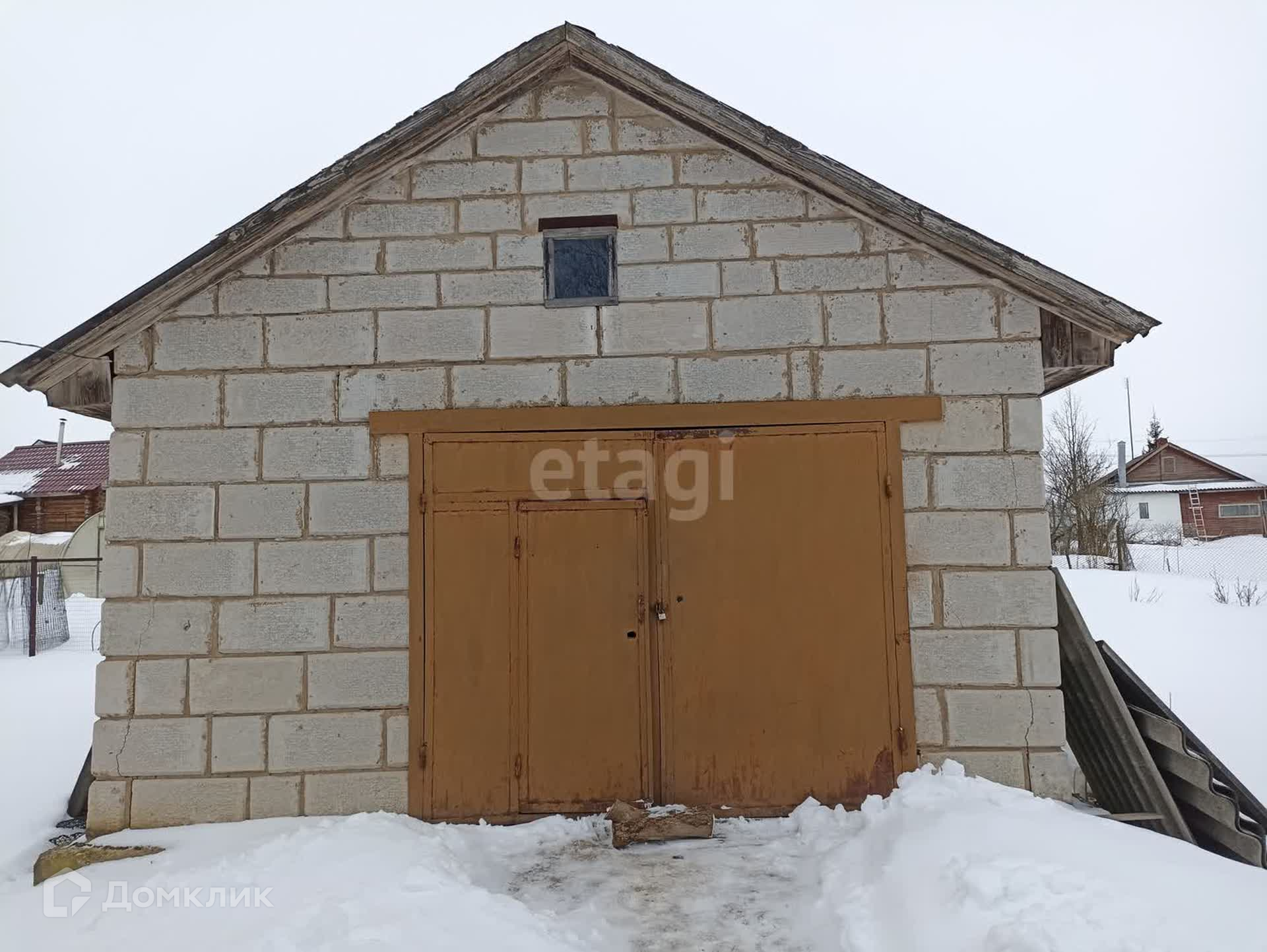 На участке добротный гараж.