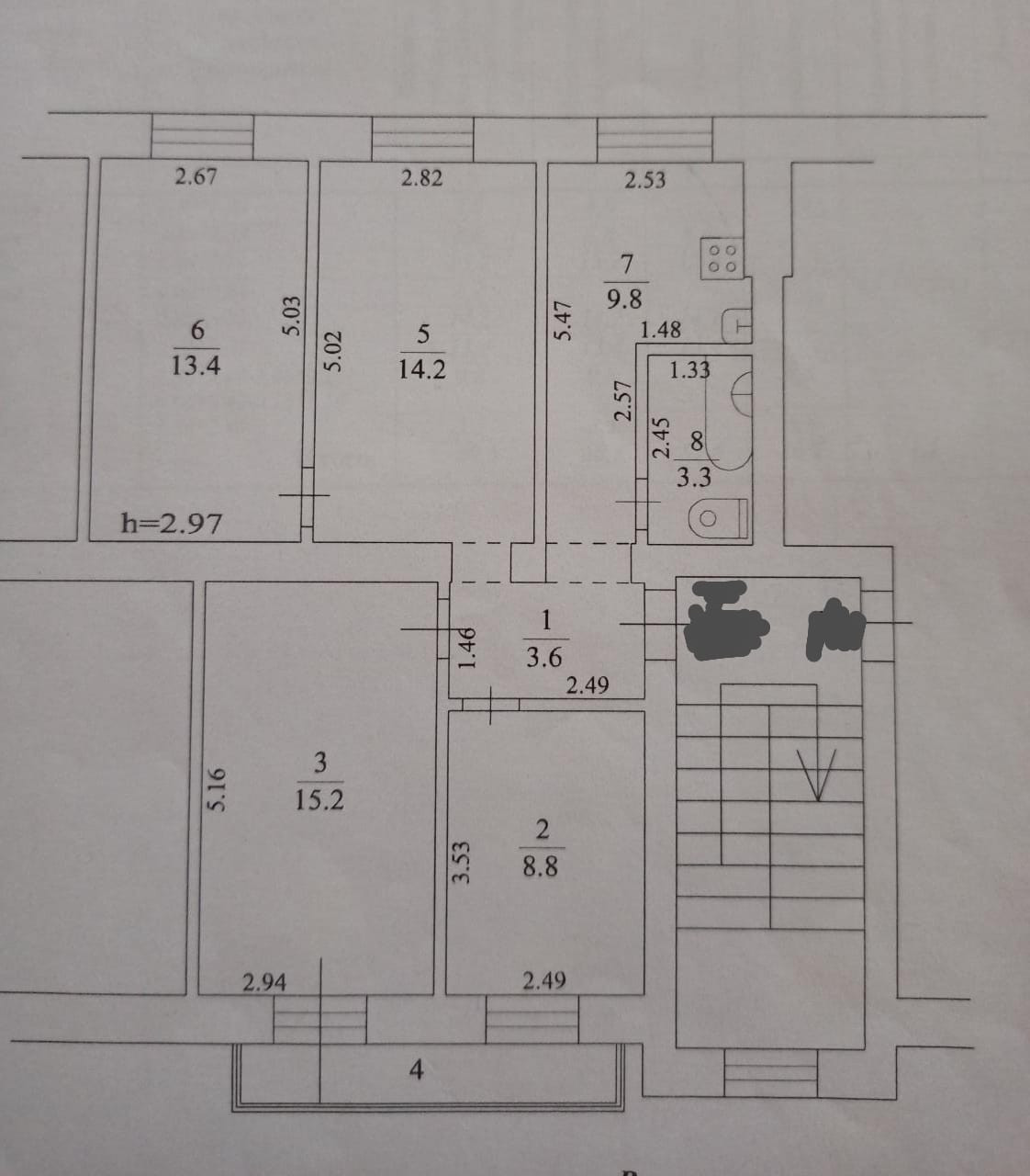 Продаю четырёхкомнатную квартиру с большим застекленным балконом в центре Монино для большой семьи. Комнаты 15,2+8,8+13,4+14,2, две комнаты из которых смежные (при желании можно сделать изолированными). Сделана перепланировка: увеличина площадь кухни и переделан санузел.