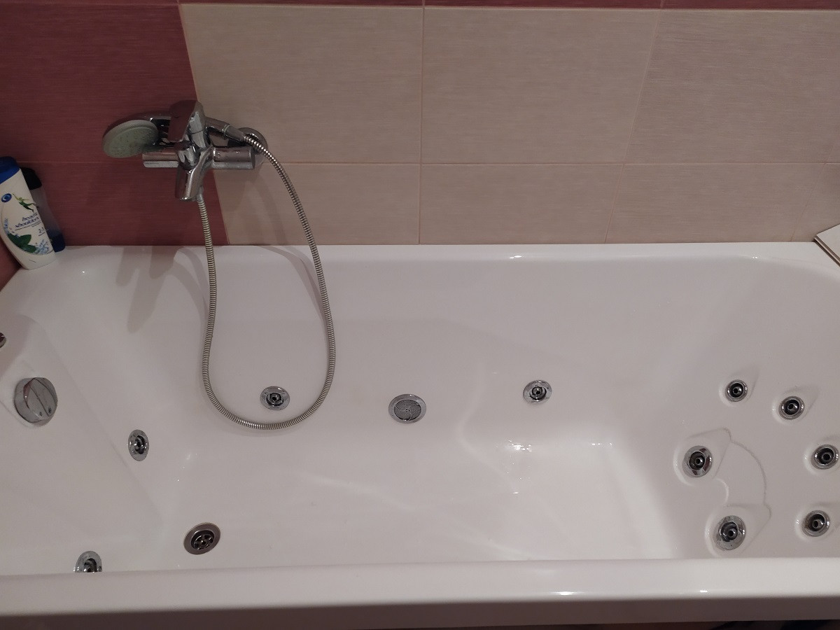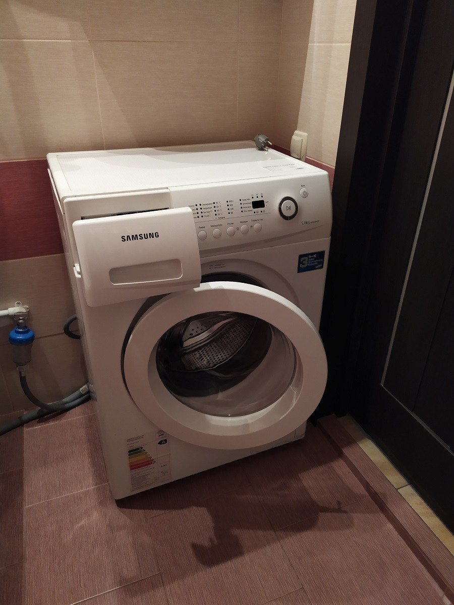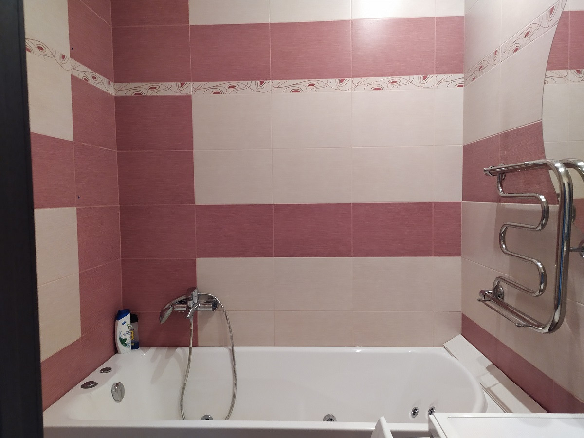 - ровные стены, наливные полы, тканевые немецкие натяжные потолки, в ванной установлена большая акриловая ванна, стиральная машина,