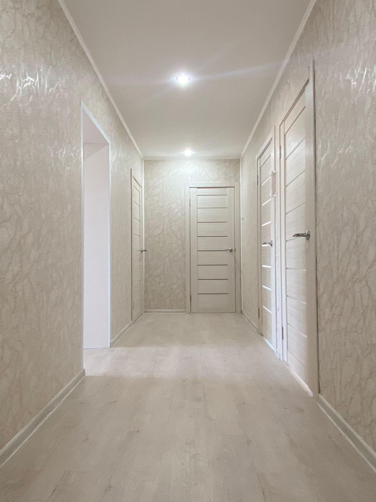 Пол везде утепленный, обшивка ламинат (33 класс). В санузле, в прихожей2, в спальне3 тёплые полы от газового котла (см на фото2).