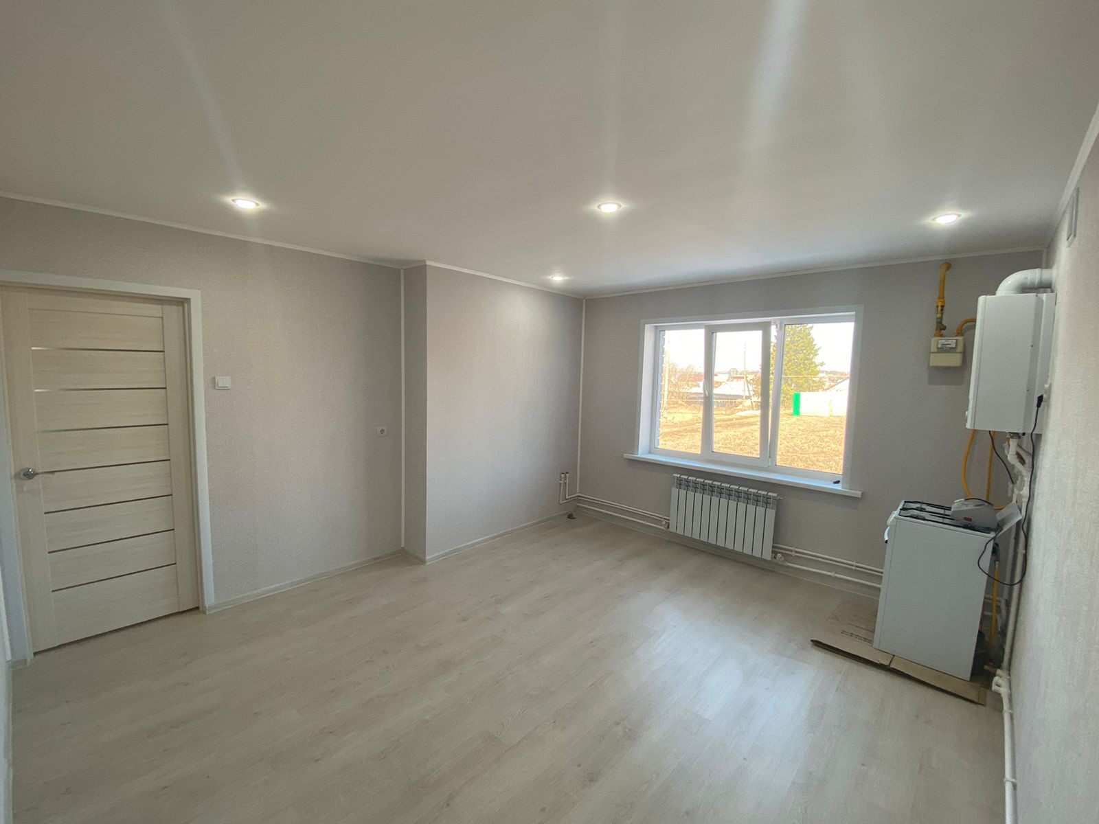 Дом отапливается 2-х контурным газовым котлом 2 года.В доме никто не жил. Стена-кирпич, плотный пенопласт 100мм, керамзитный-бетонный заводской блок.