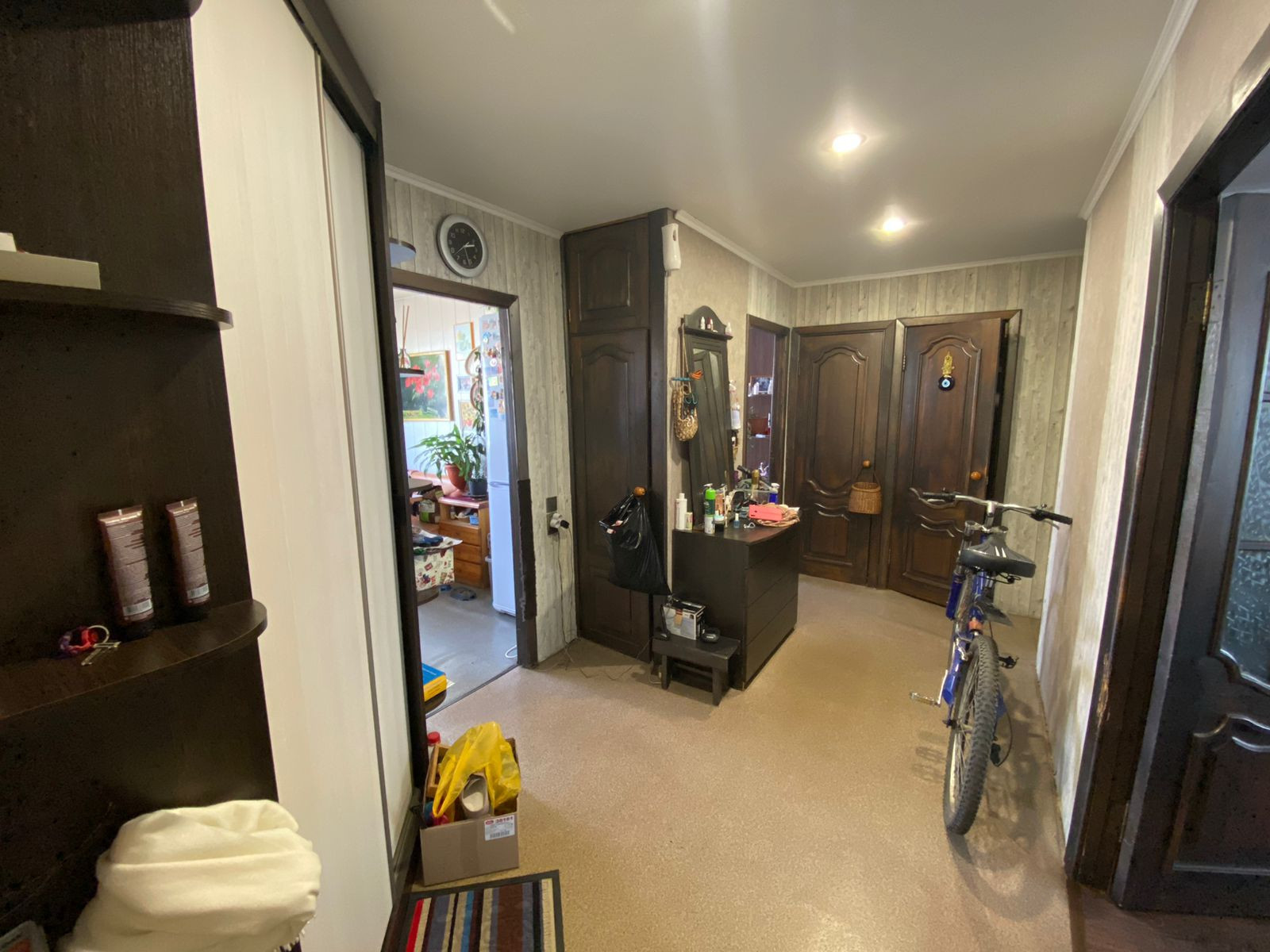 В квартире частично сделан ремонт, качественная входная дверь, окна ПВХ, установлены счетчики на воду, газ, электричество. Имеется газовый водонагреватель. В прихожей установлен шкаф-купе.