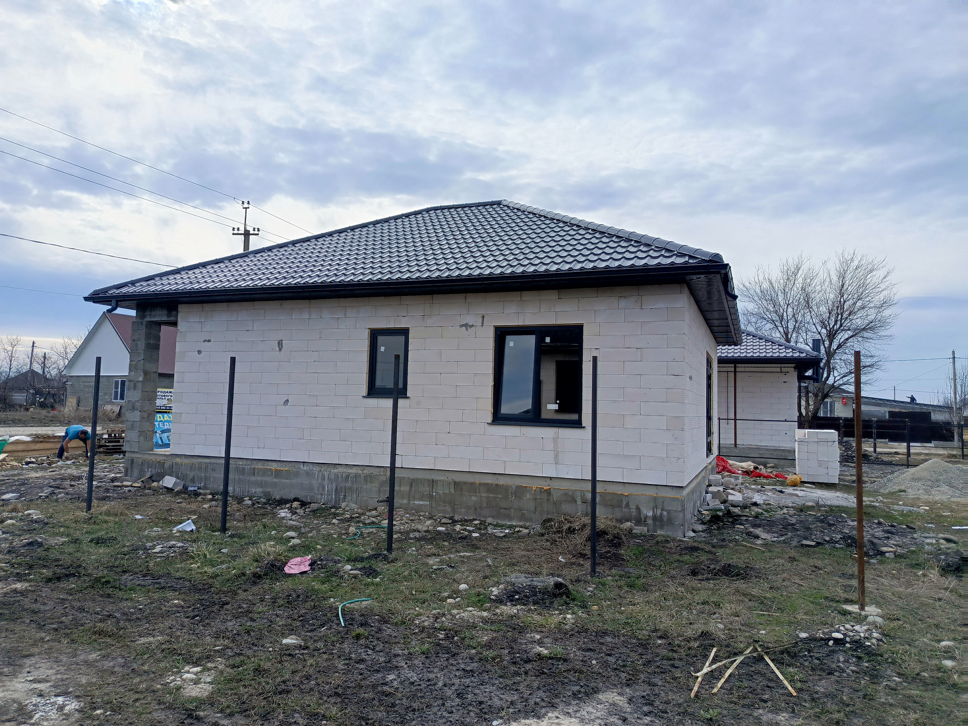 Продаю новый дом пл. 80.6 кв.м. из газоблока без внутренней отделки. Участок 5 сот. пгт. Мостовско, Ясная, 6