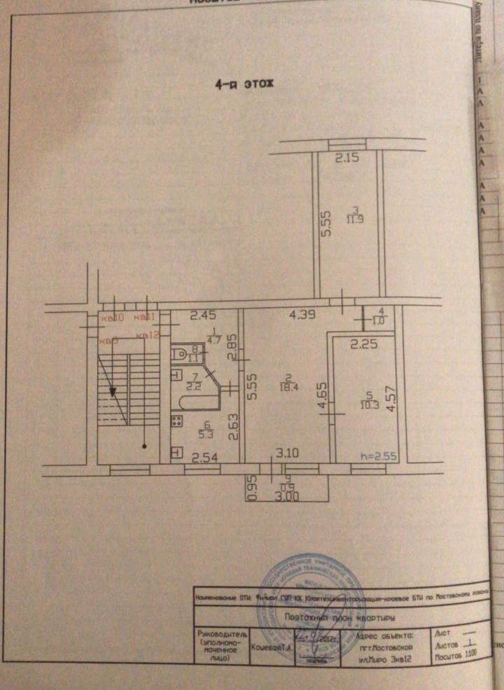 3-комнатная квартира, 55 м2, этаж 4 / 5, на продажу в поселке городского типа Мостовской, улица Мира, 3