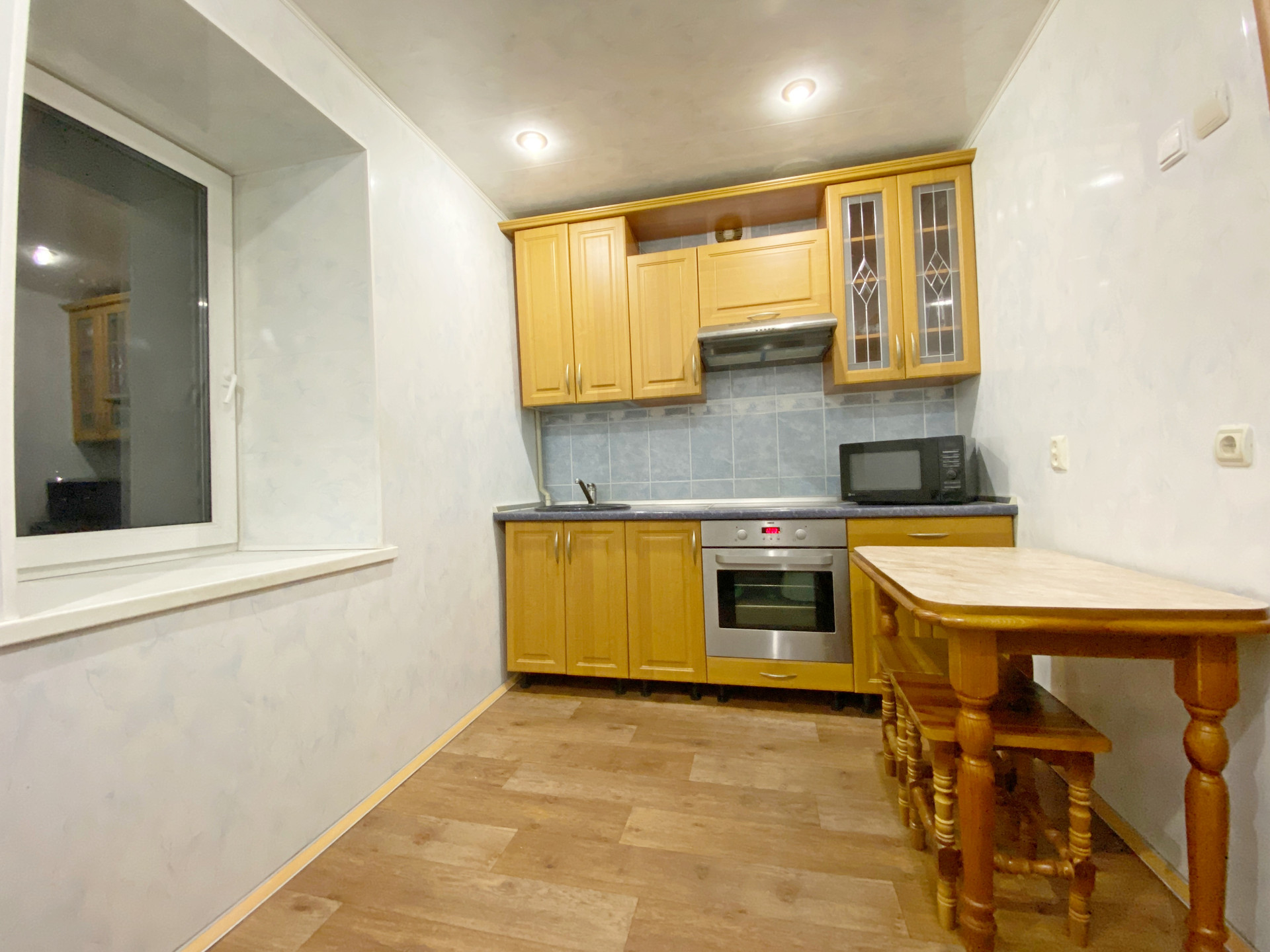 Полностью заменены сантехника, стояки, подводка воды. Установлены новые радиаторы отопления по всей квартире. На кухне панорамный пластиковый стеклопакет.
