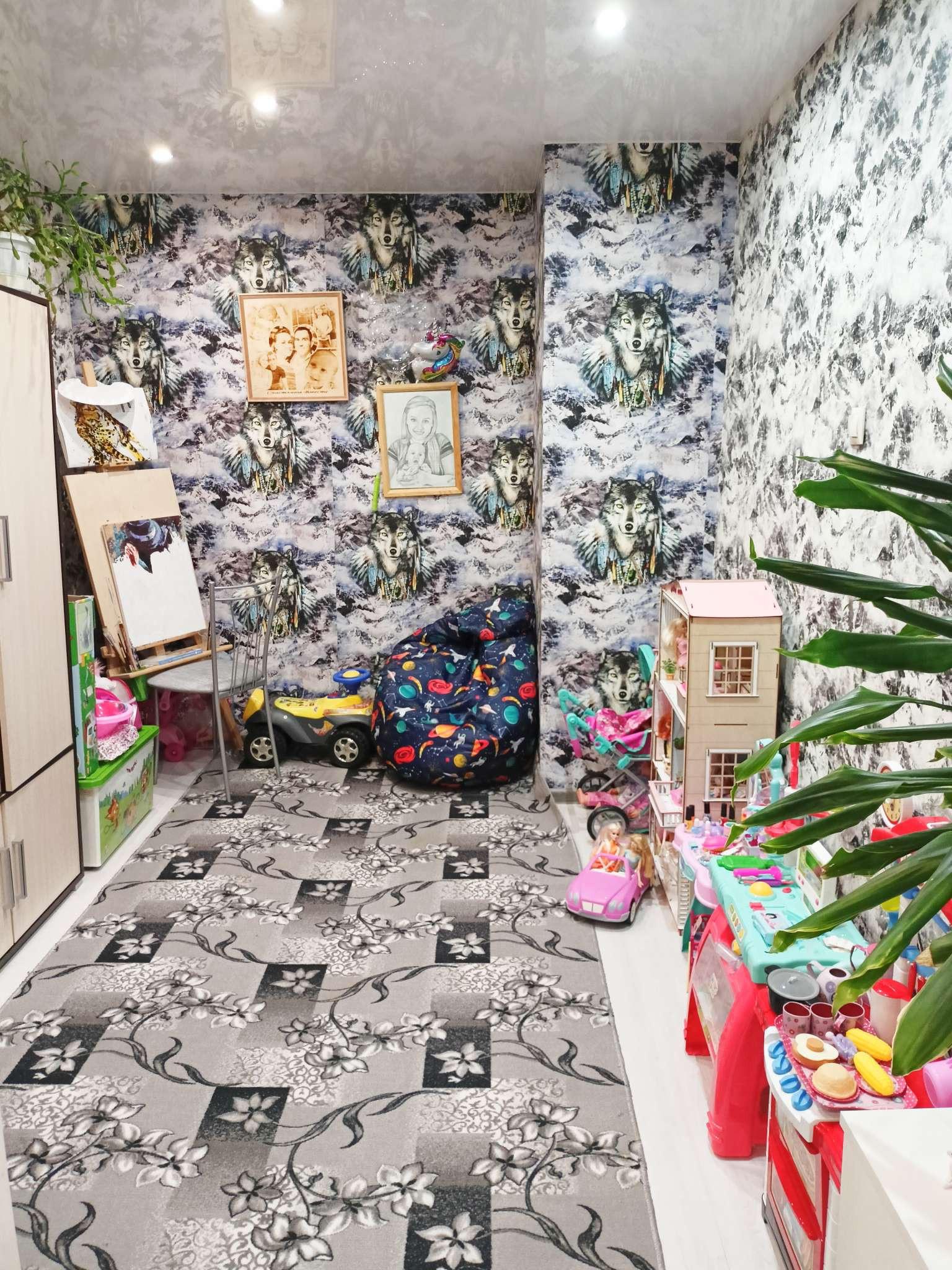 В квартире сделан современный косметический ремонт: натяжные потолки, полы- ламинат, установлены стеклопакеты, хорошие обои, сделана дополнительная подсветка.