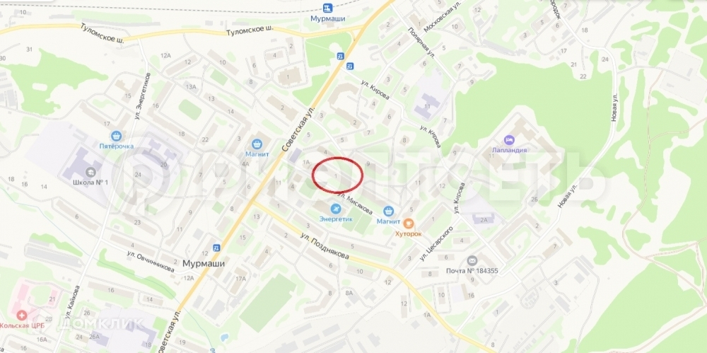 2-комнатная квартира, 44.4 м2, этаж 4 / 5, на продажу в поселке городского типа Мурмаши, улица Мисякова, 1