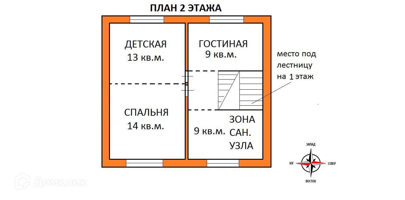 - Зона под сан.узел: 9 кв.м.