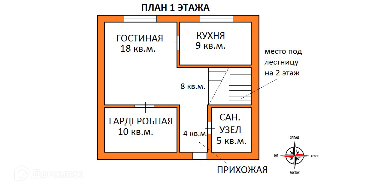 - Лестница на второй этаж: 8 кв.м.