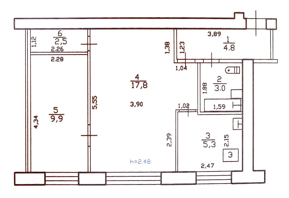 Высота потолков 2.5 м