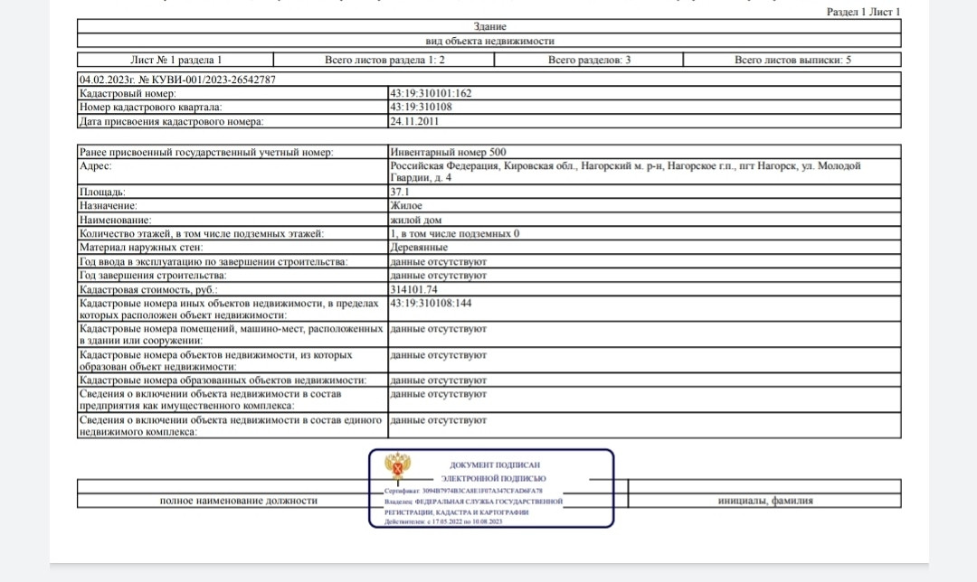 1-этажный дом, 37.1 м2, на продажу в поселке городского типа Нагорск, улица Молодой Гвардии, 4